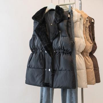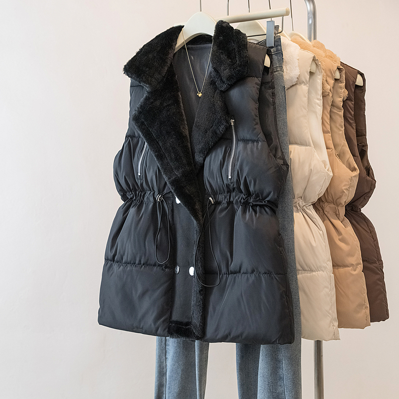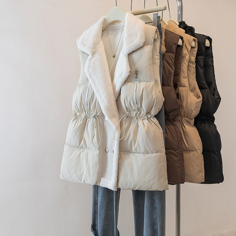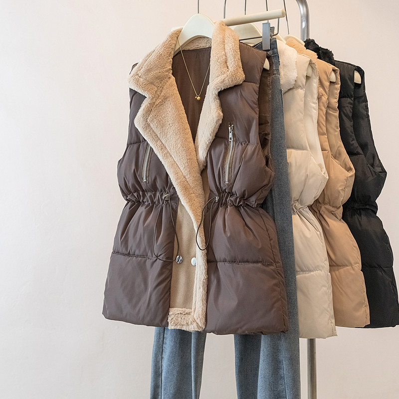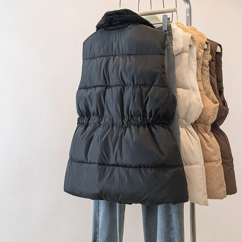 FA48104# 秋冬季新款羊羔毛领拼接无袖棉衣马甲时尚收腰百搭外套女 服裝批發女裝批發服飾貨源