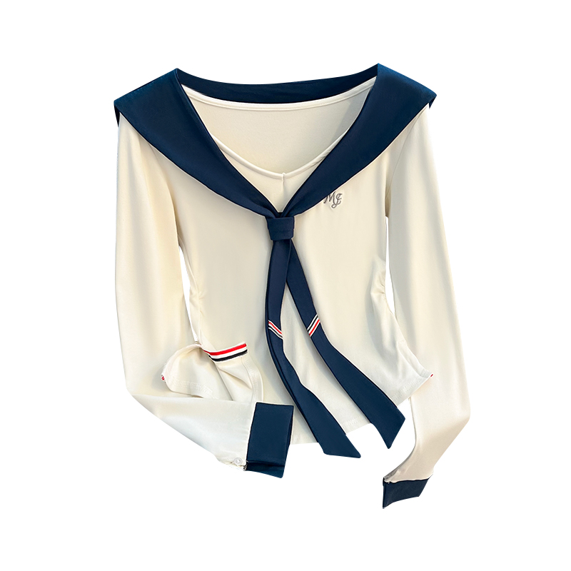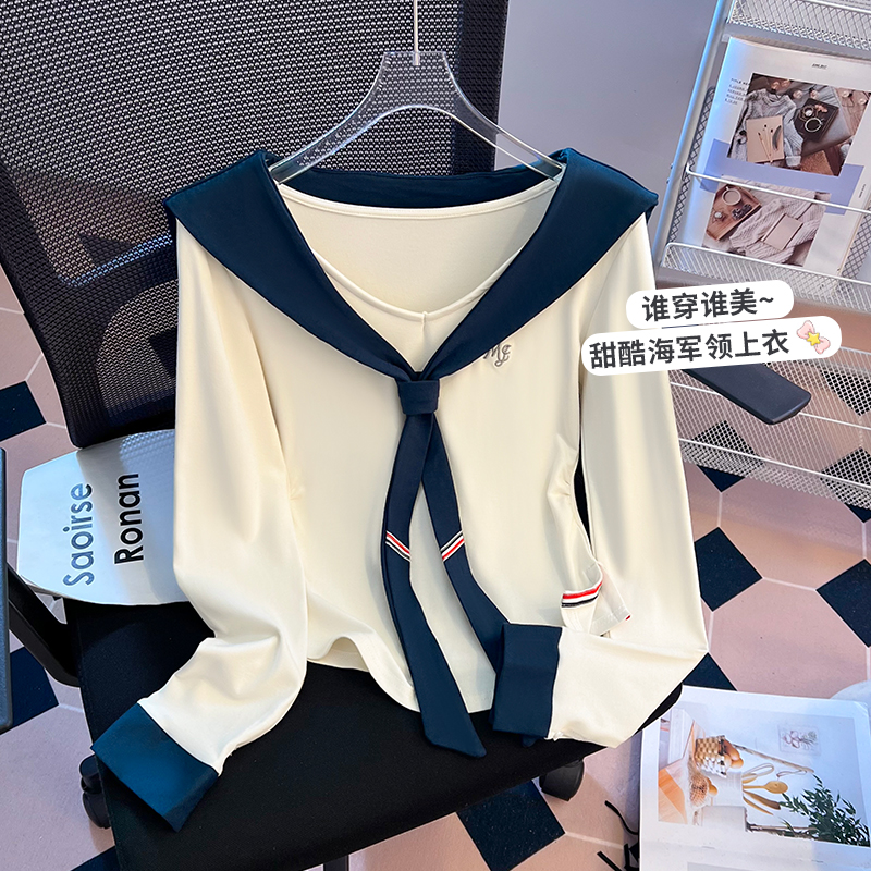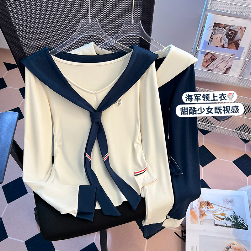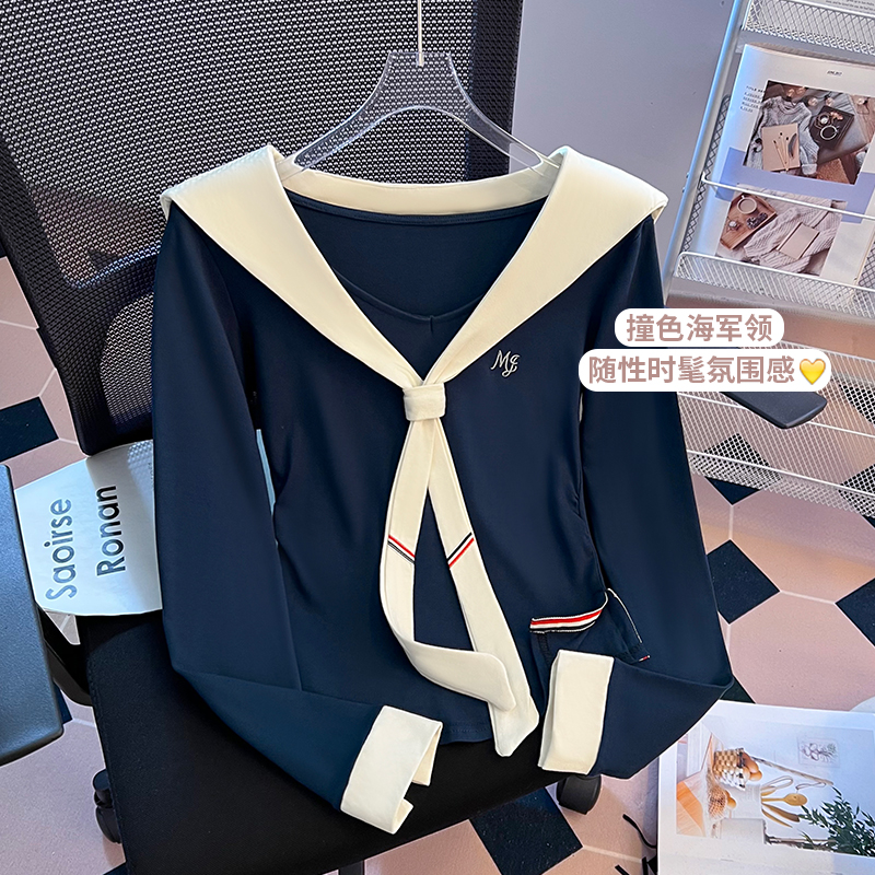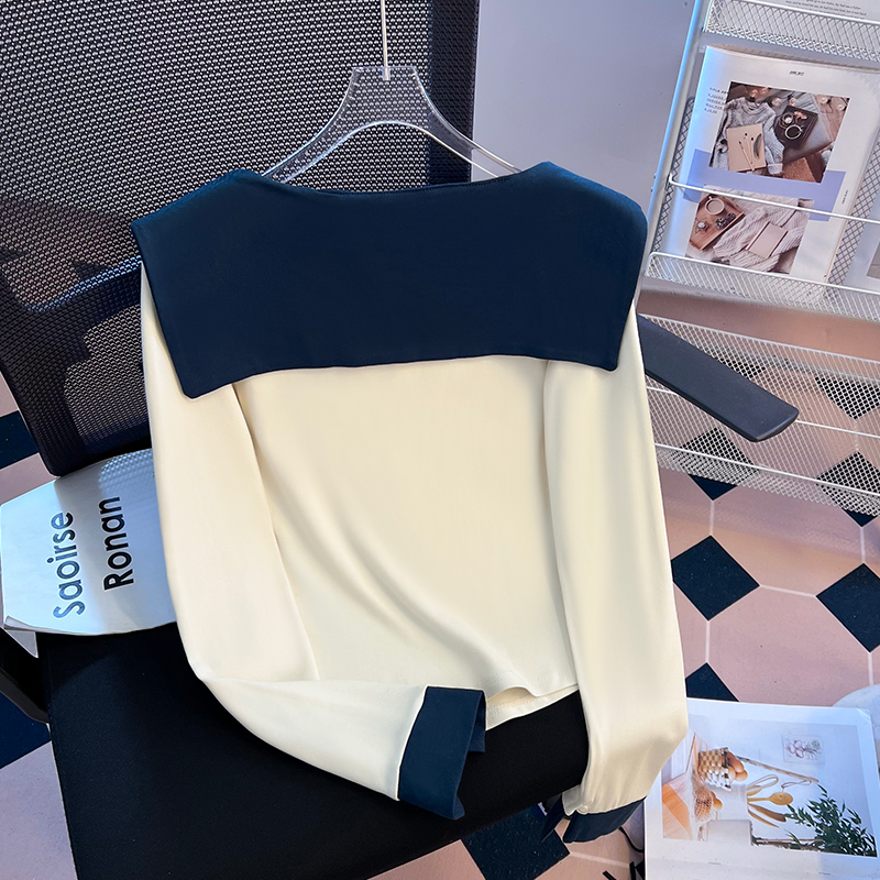 FA48874# 秋季新款女装T恤美式学院风海军领披肩设计感绝美上衣 服裝批發女裝批發服飾貨源
