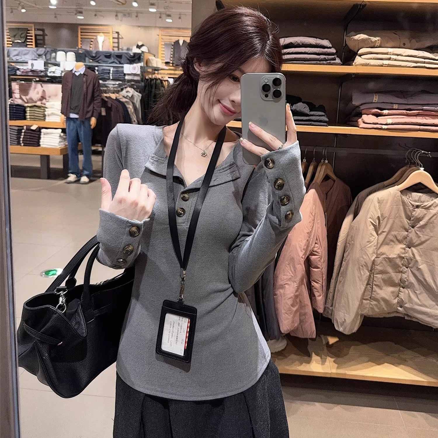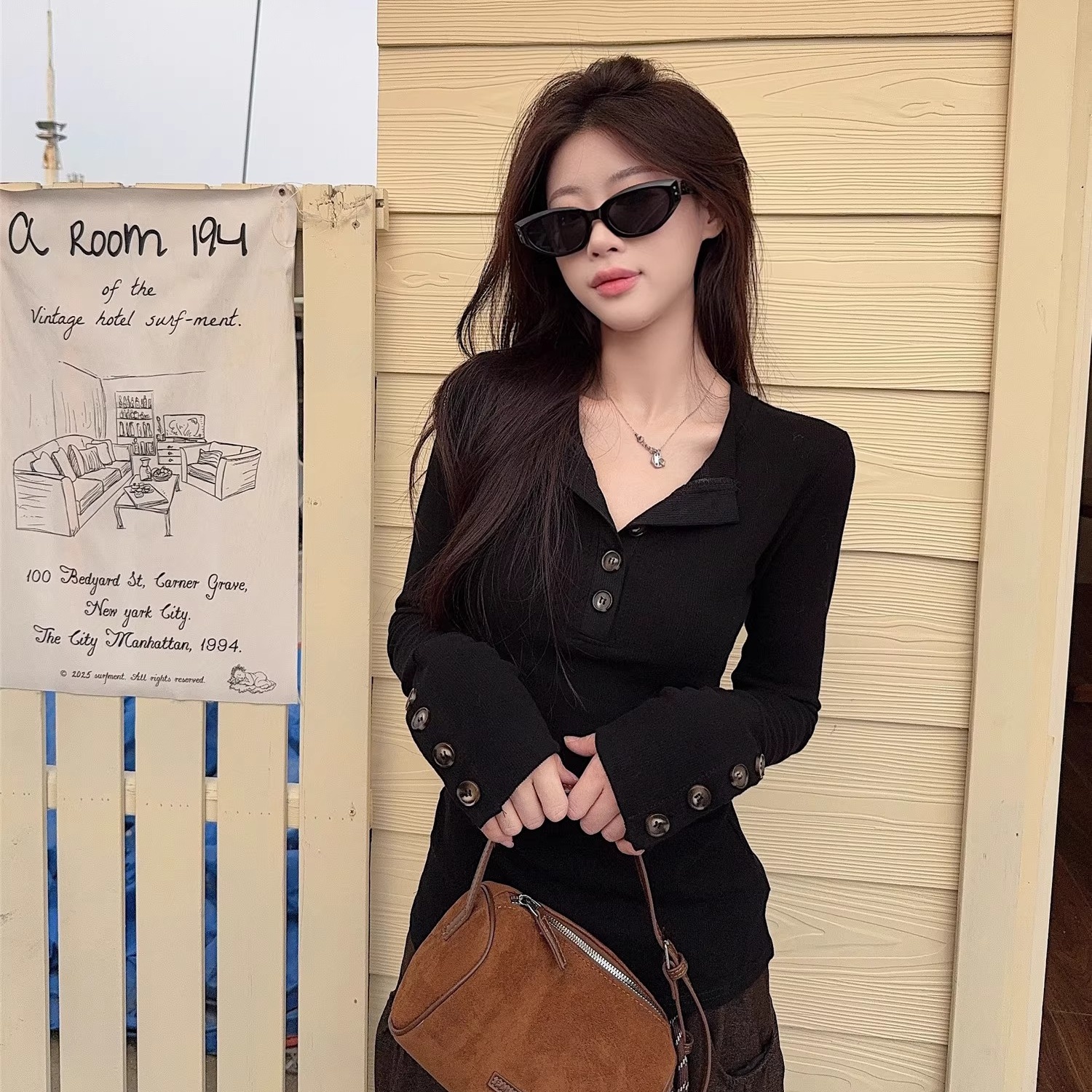 FA49000# 面料韩系设计感正肩长袖T恤女秋冬内搭显瘦小众打底 服裝批發女裝批發服飾貨源