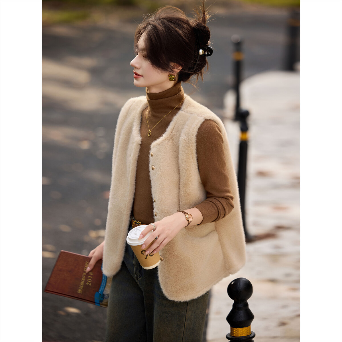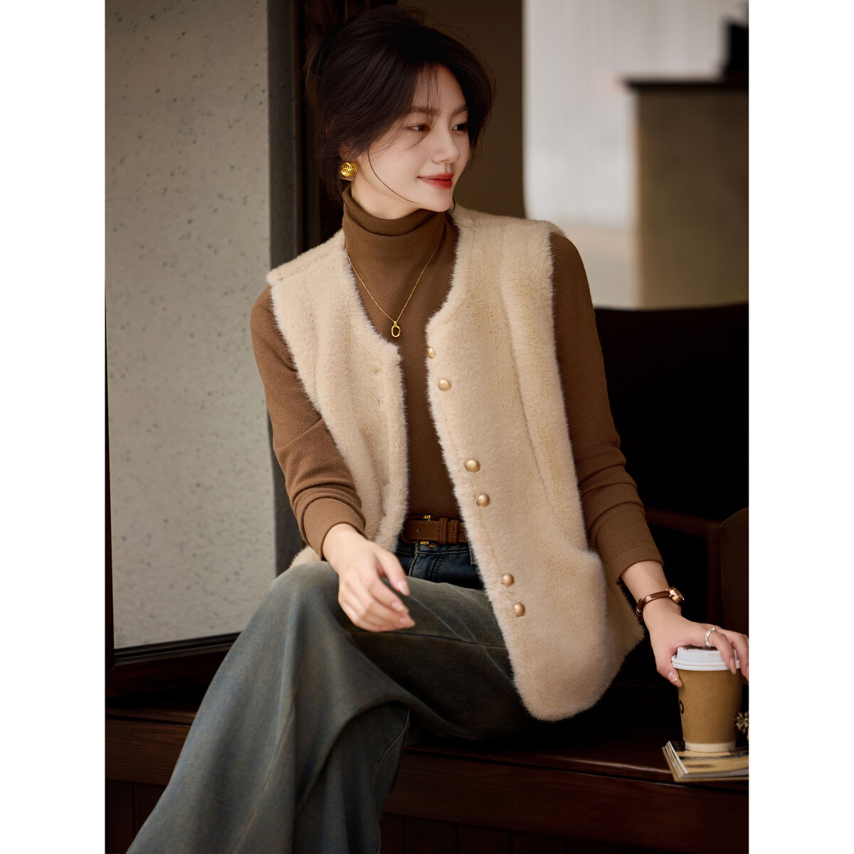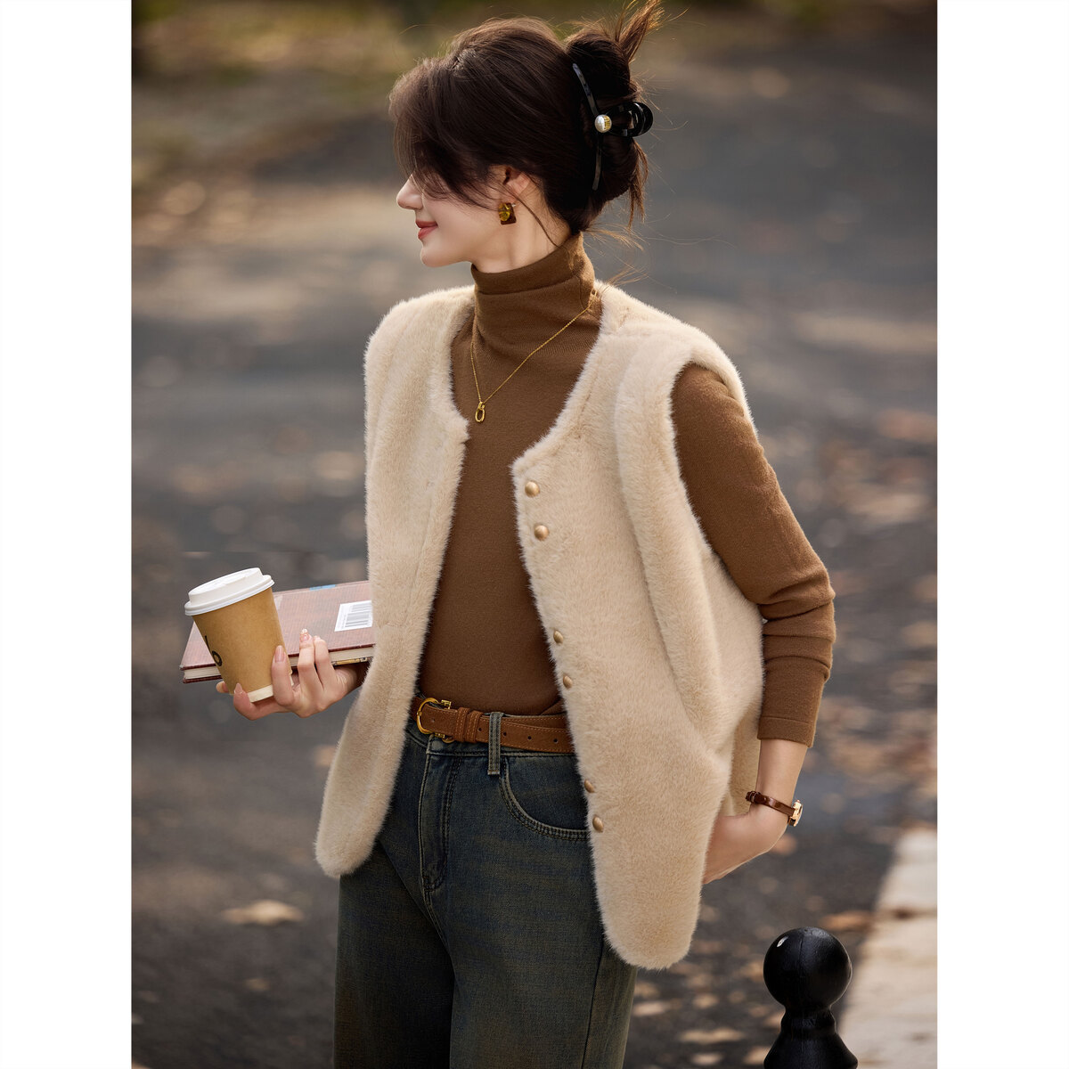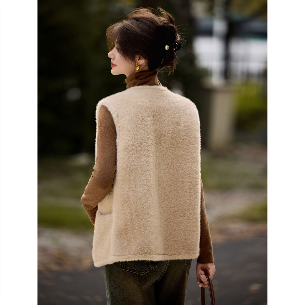 FA49012# 秋冬季韩系小香风气质百搭宽松外穿背心仿皮草马甲女 服裝批發女裝批發服飾貨源