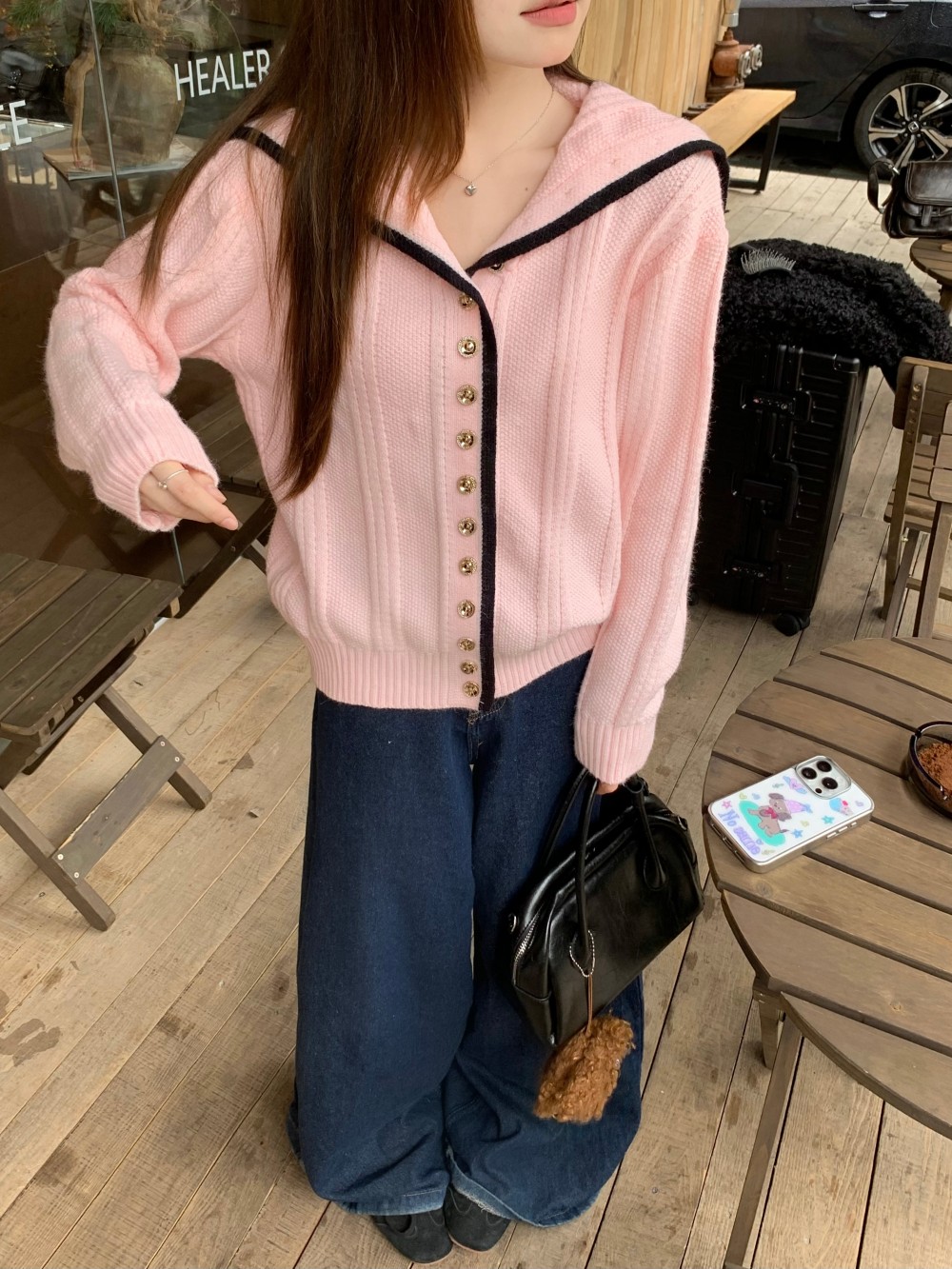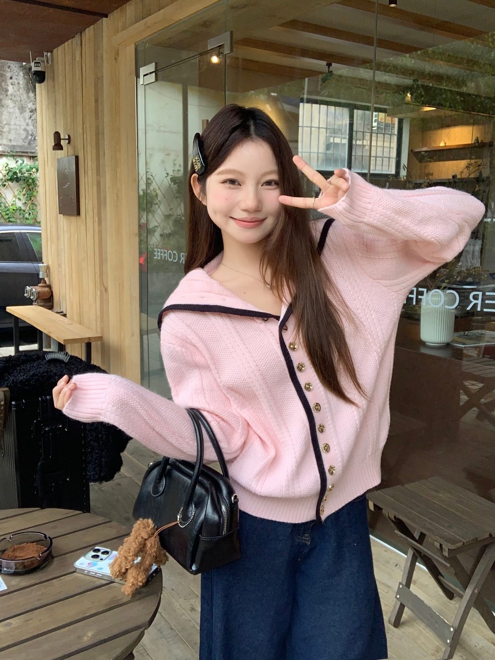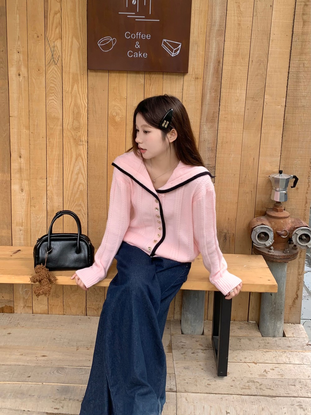 粉色海军领毛衣