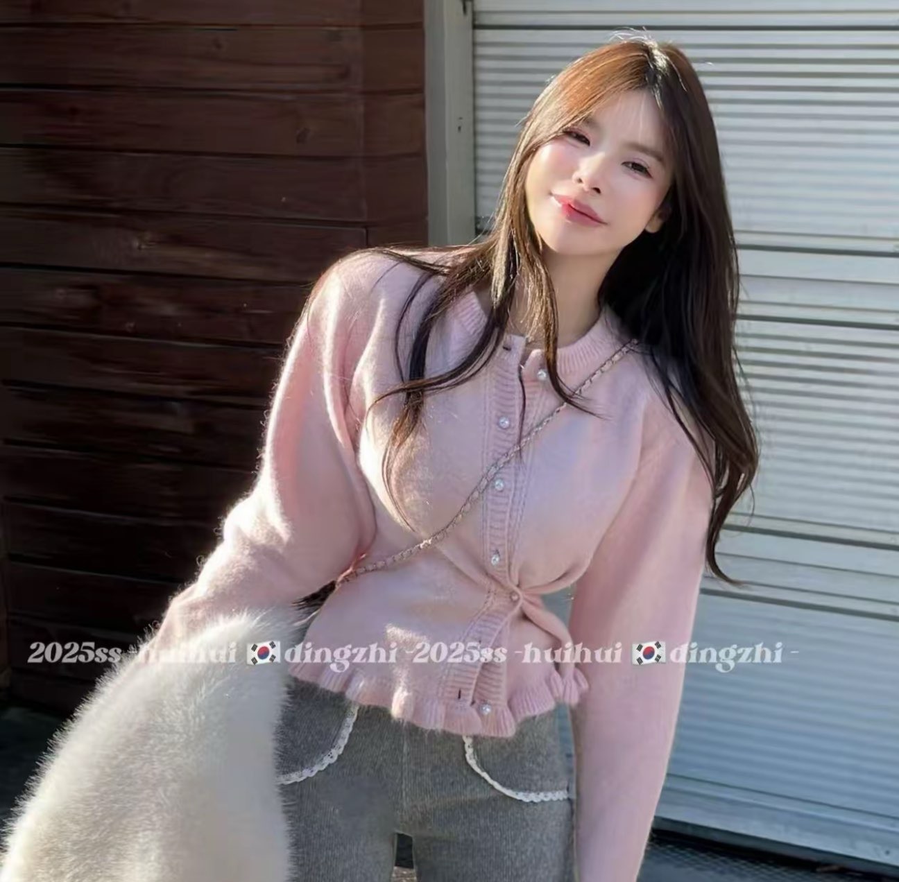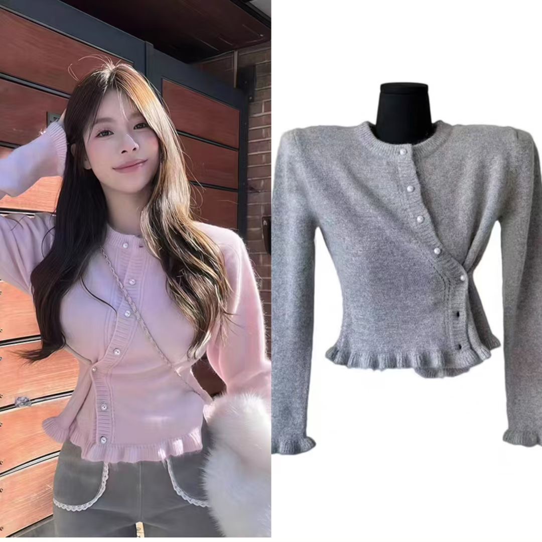 FA49171# 东大门定制甜美风错扣不规则毛针织开衫上衣 服裝批發女裝批發服飾貨源