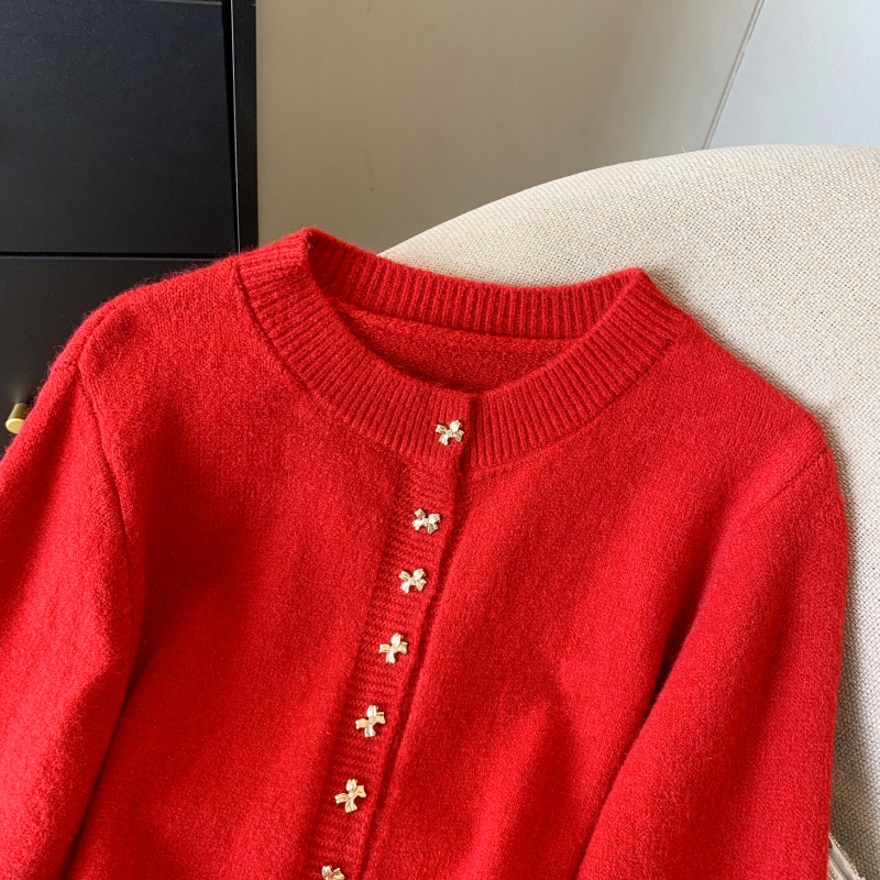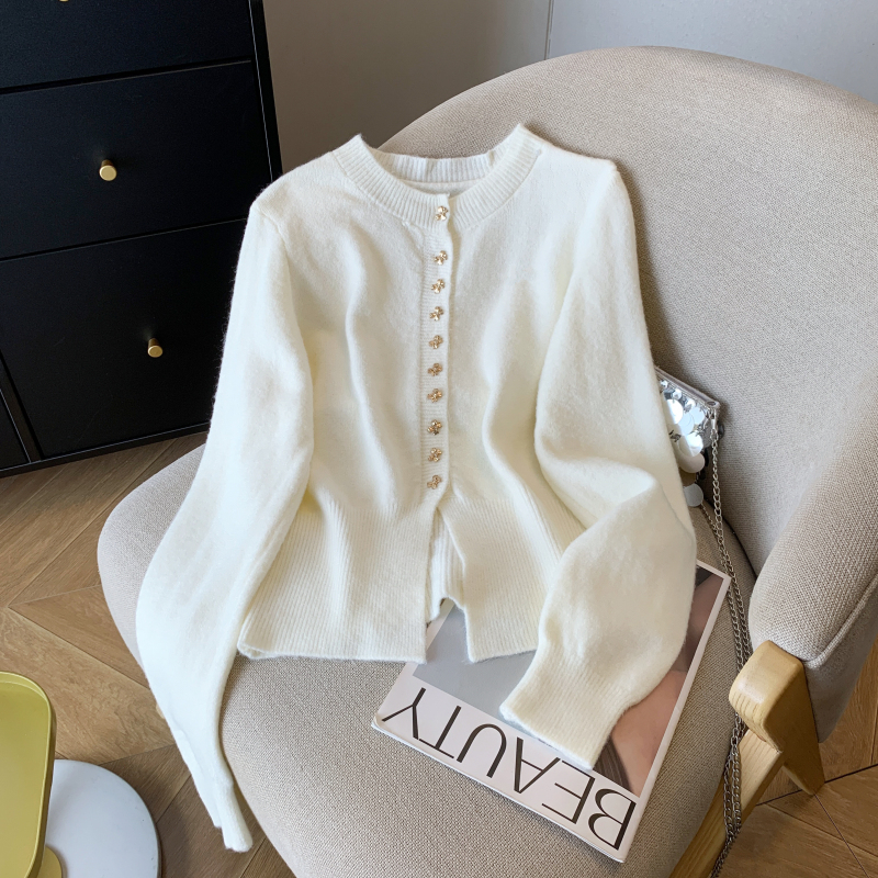 FA49206# 设计高级感泡泡袖针织衫女秋冬别致洋气开衫毛衣外套上衣 服裝批發女裝批發服飾貨源