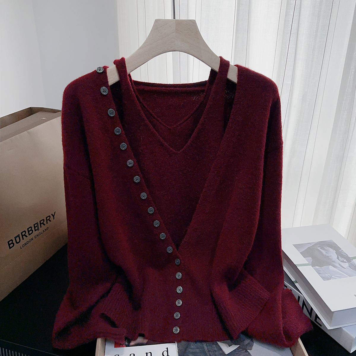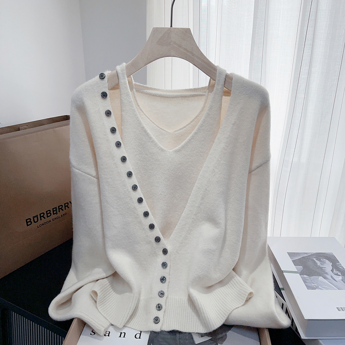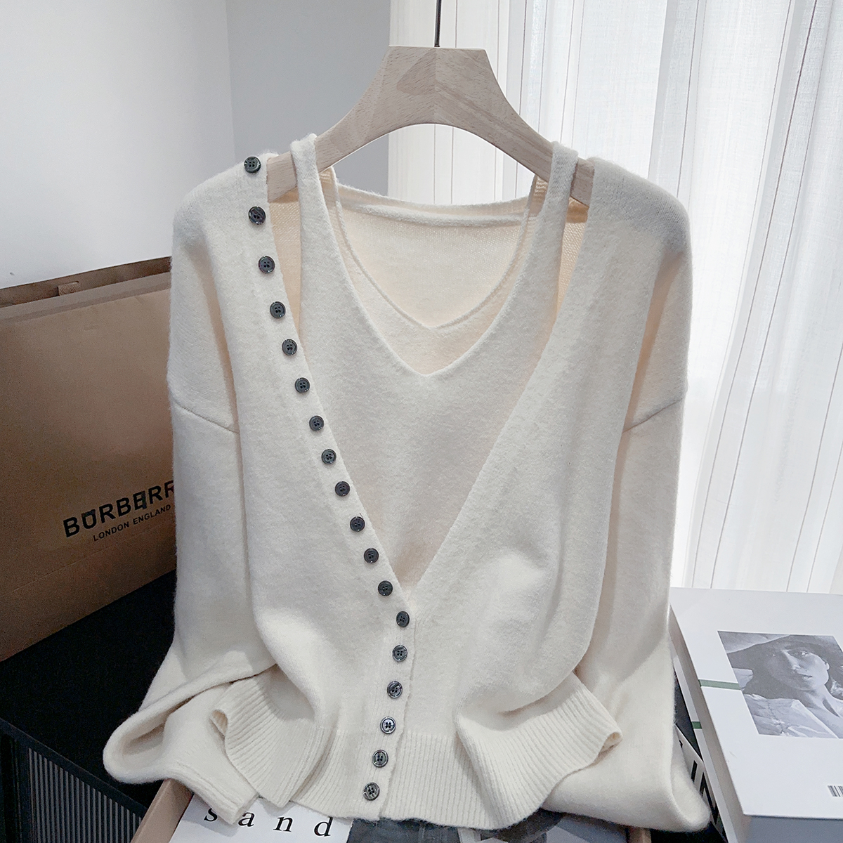 FA49209# 通勤设计感两件套毛衣女秋冬新款小众宽松显瘦针织衫上衣 服裝批發女裝批發服飾貨源