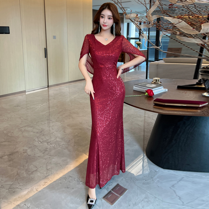 首页 > 礼服、晚礼服 > FA49300# 款高级感气质亮片轻奢小众主持人鱼尾服晚礼服女