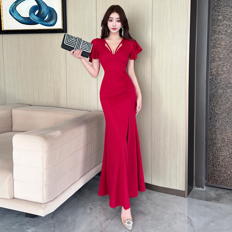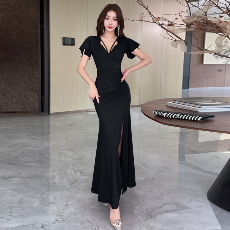 FA49317# 性感连衣裙夜场女装时尚足浴技师工作服收腰显瘦spa晚礼服长裙KTV