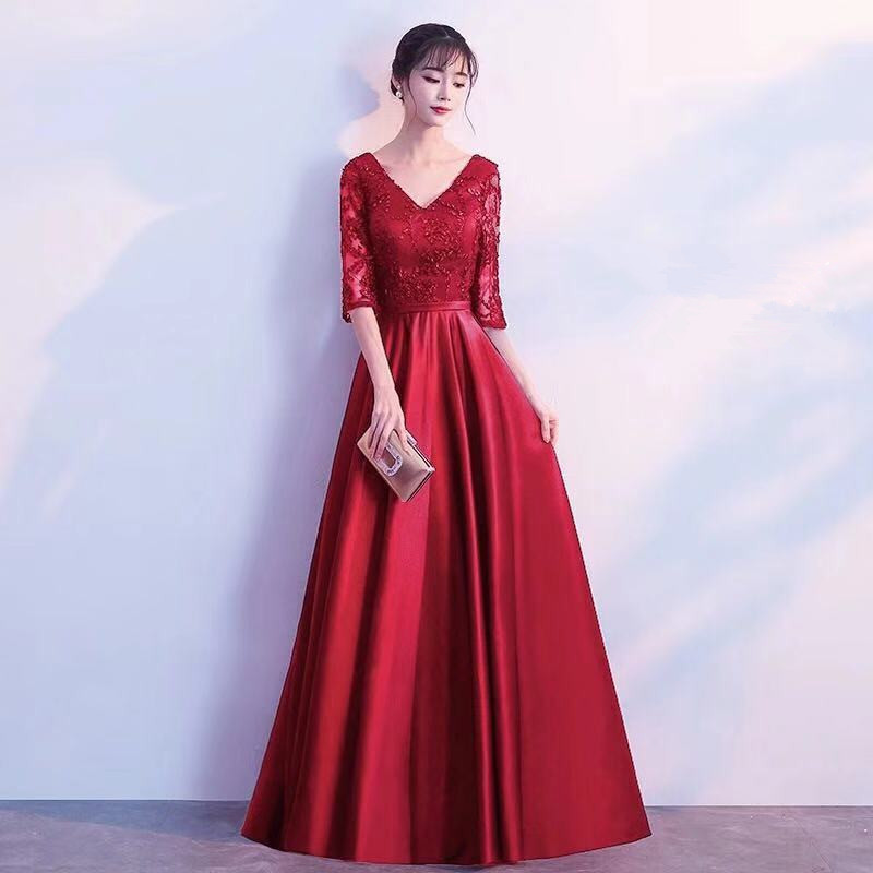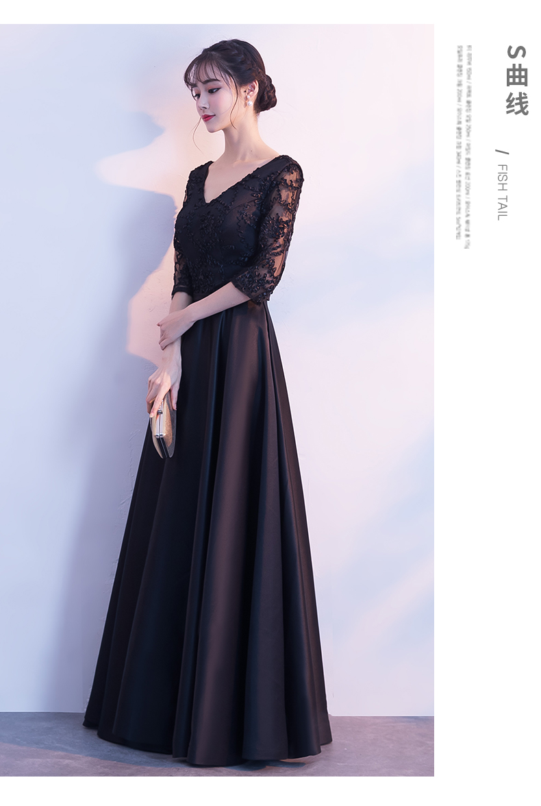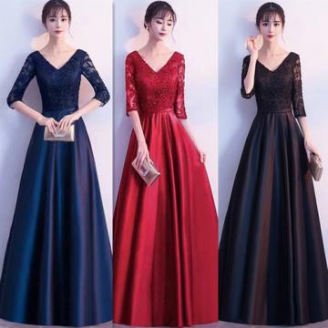 FA49324# 晚礼服公司宴会主持人长款v领长袖显瘦派对长裙连衣