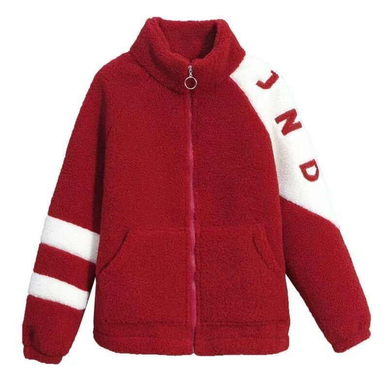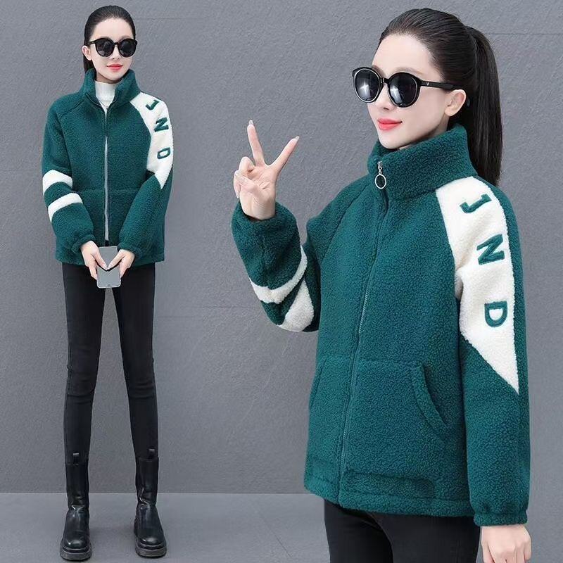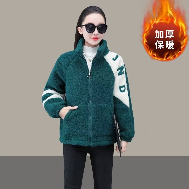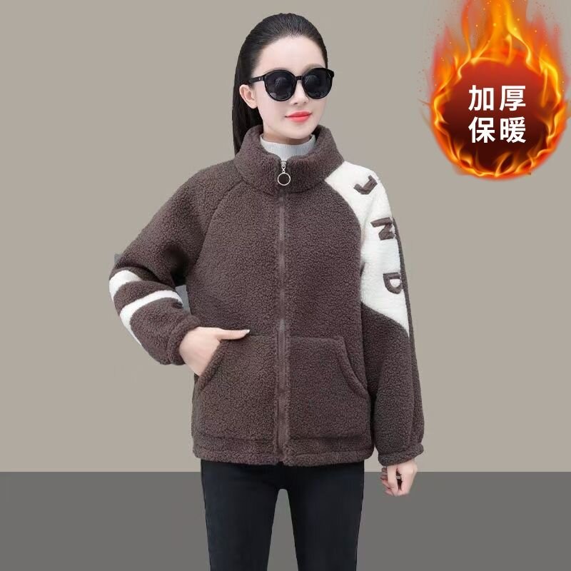 FA49447# 冬季新款加绒加厚羊羔绒棉衣外套女秋冬高档洋气高领字母刺绣棉服 服裝批發女裝批發服飾貨源
