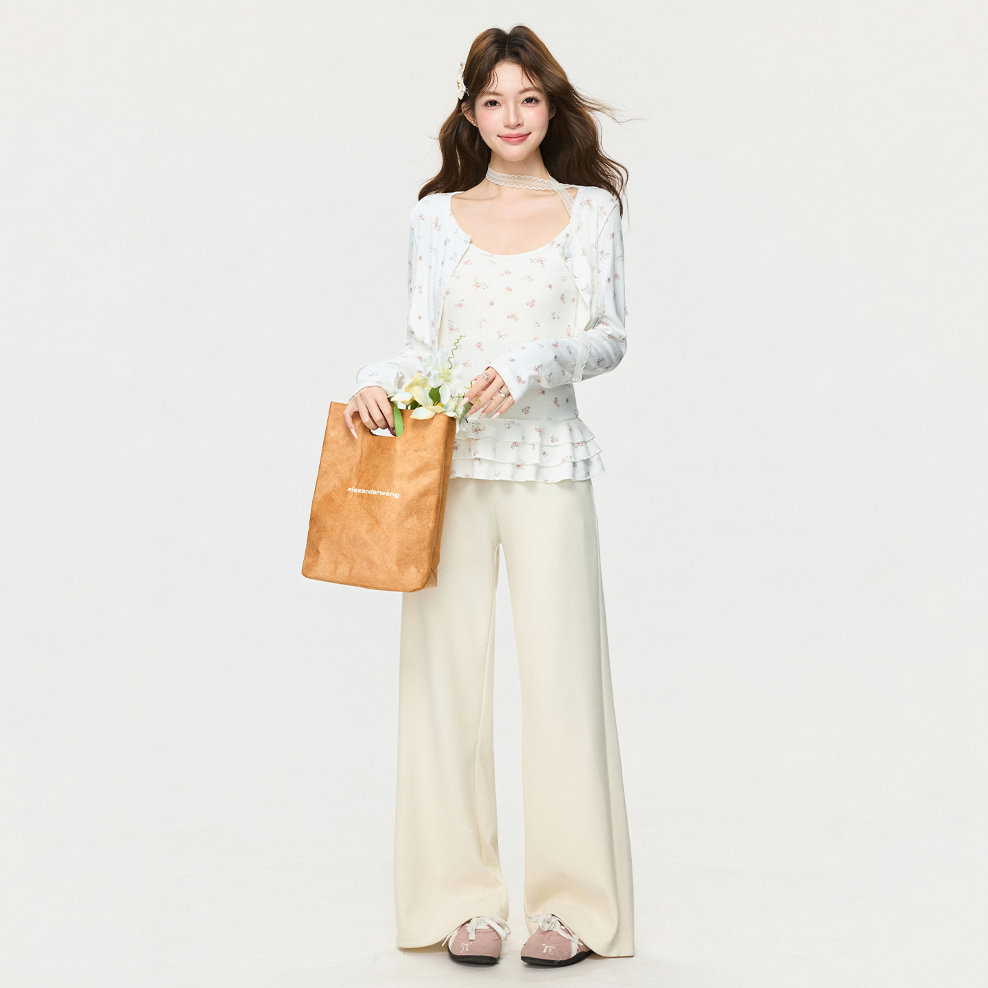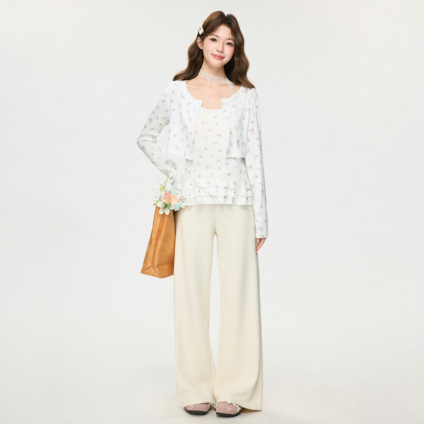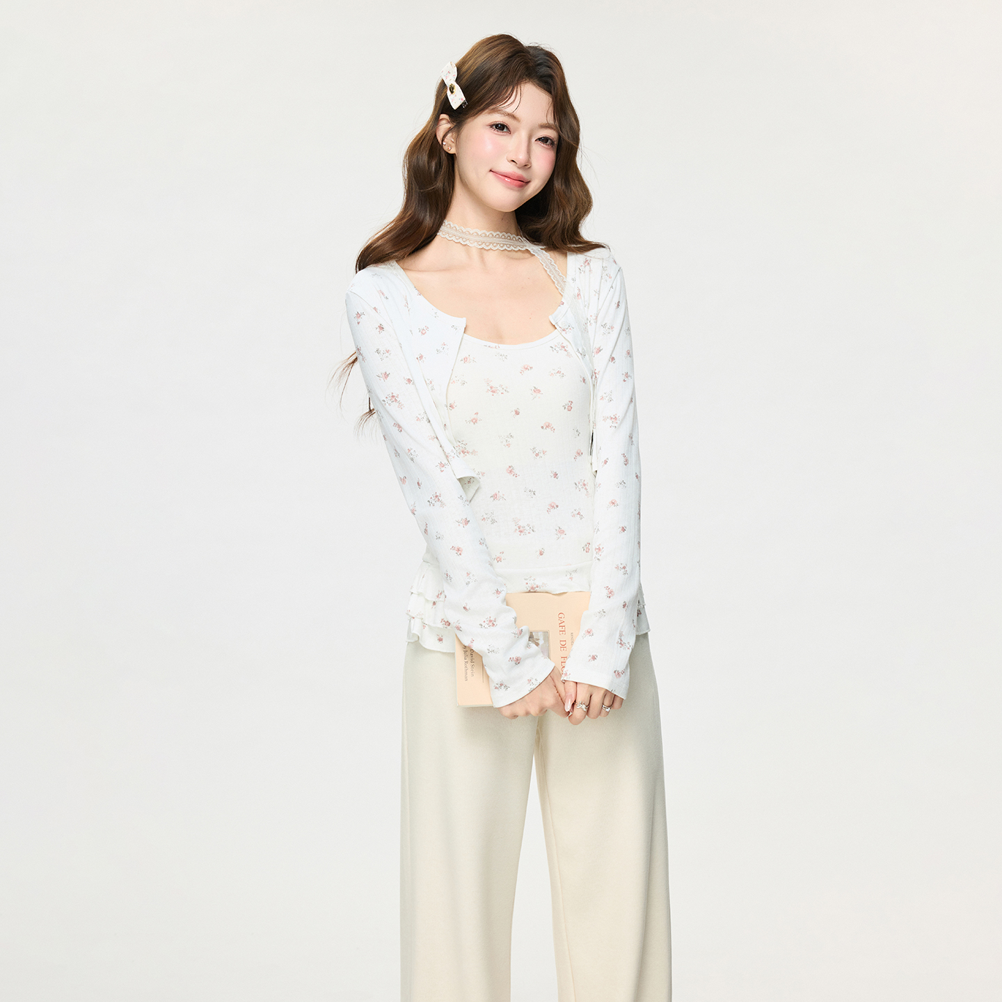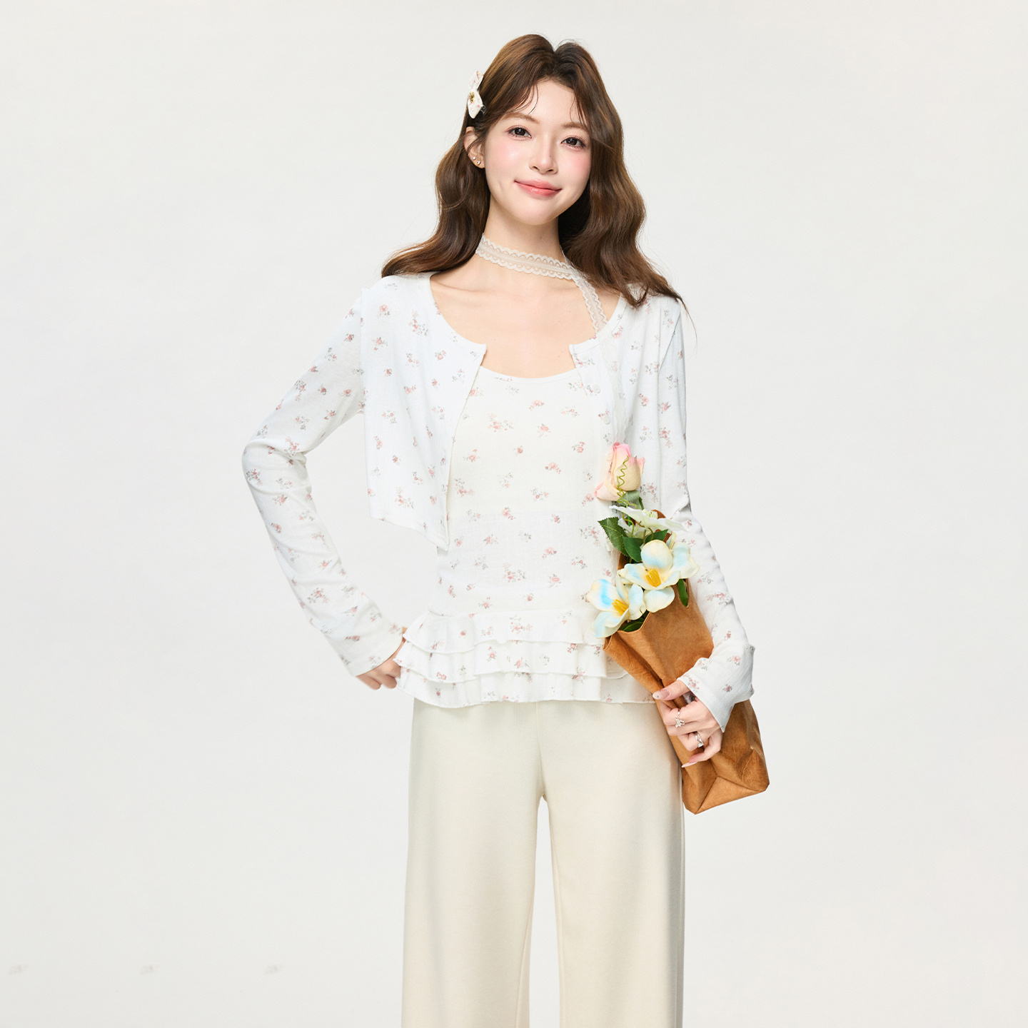 FA55752# 韩系小众碎花上衣长袖t恤春季新款修身短款开衫外套 服裝批發女裝批發服飾貨源