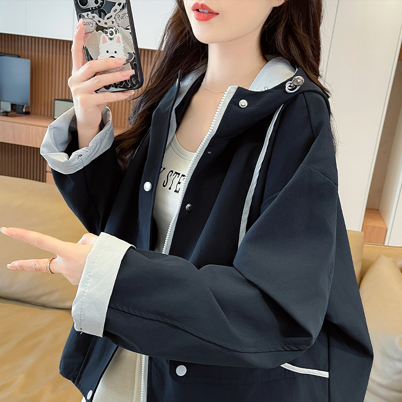FA55777# 早春连帽外套新款洋气初高中生女冲锋衣百搭时尚外套 服裝批發女裝批發服飾貨源