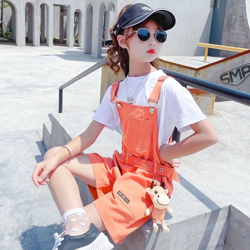 PS90004# 夏季短袖中学生背带裤短裤宽松炸街青少年