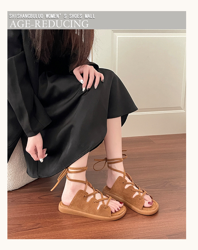 X-32449# 时尚复古小众细带罗马凉鞋女夏季新款韩版休闲露趾凉鞋沙滩鞋 鞋子批发女鞋批发