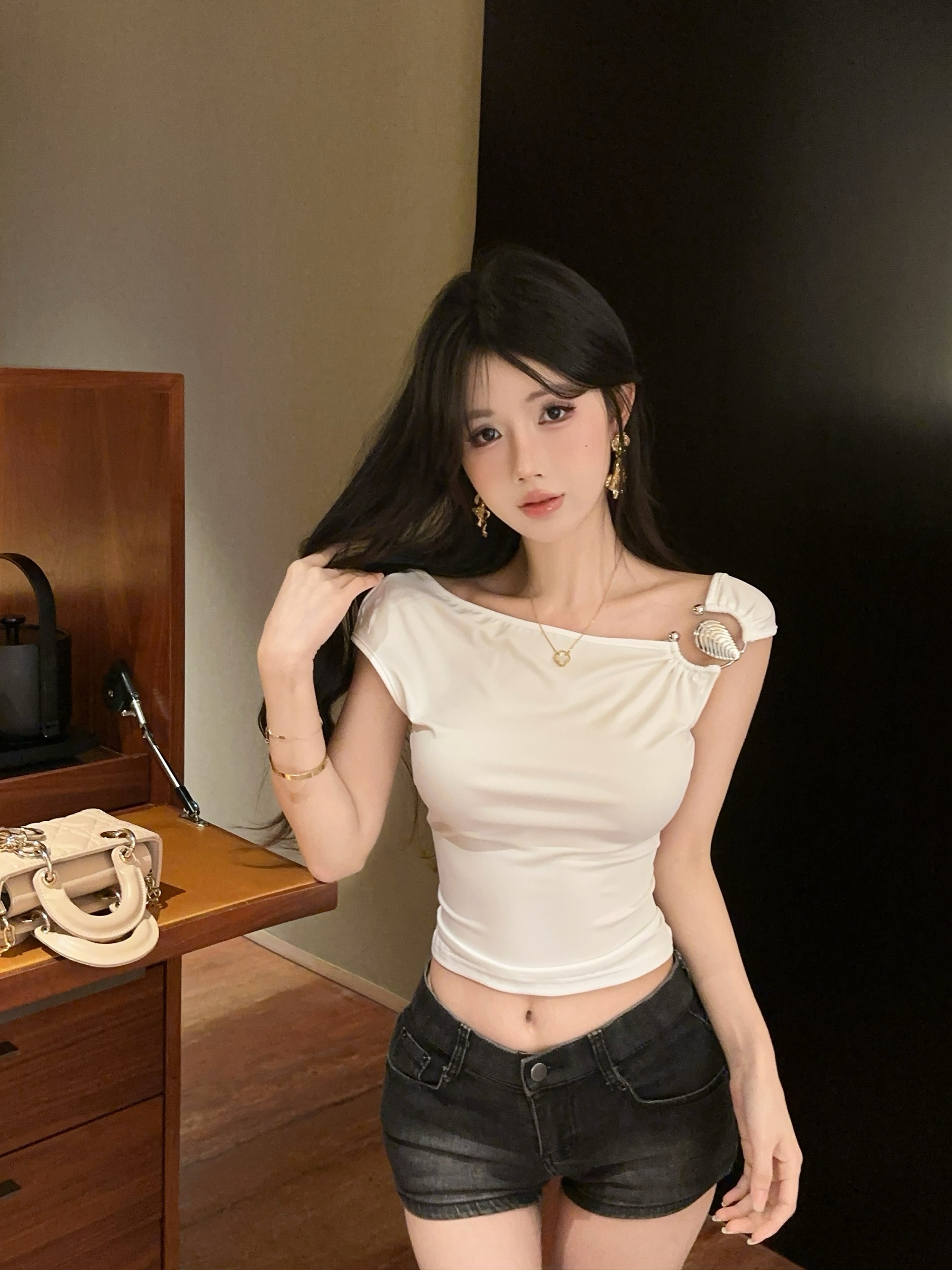 L:衣长46cm 胸围88cm 腰围68cm
