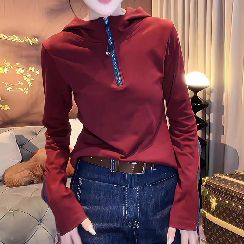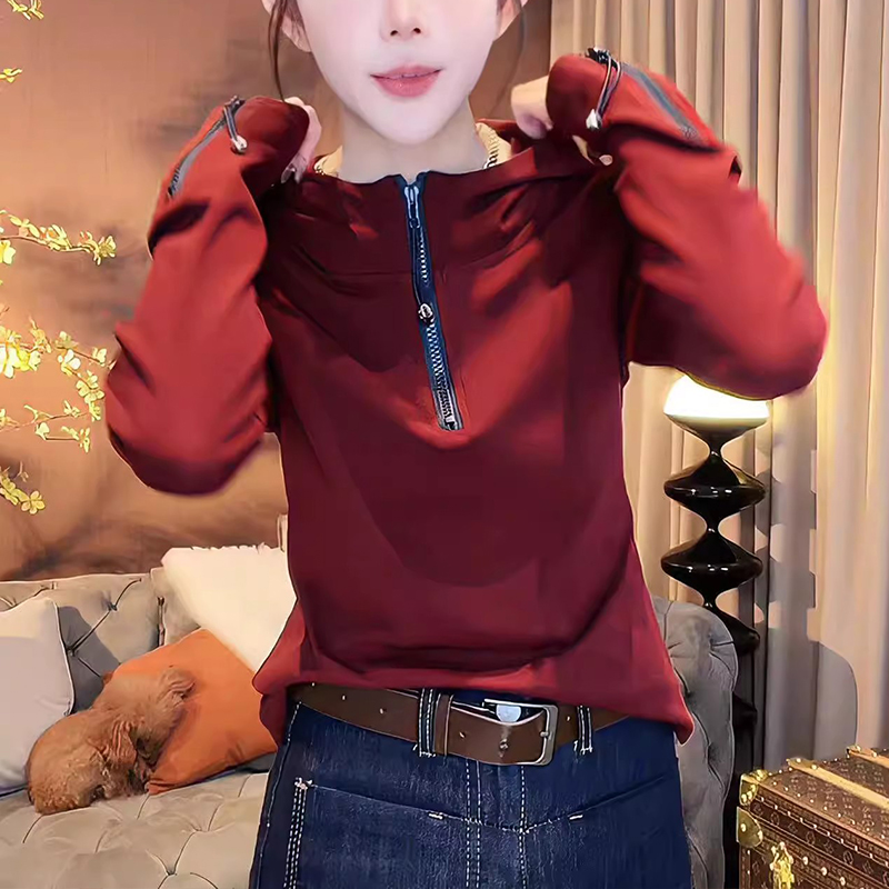 FA42201# 半拉链连帽长袖卫衣女春秋新款时尚百搭显瘦套头帽衫上衣欧货