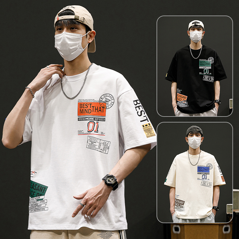 Home > T恤、衬衫---男装 > FA42284# 假两件t恤男士短袖夏季冰丝薄款宽松潮牌潮流韩版青少年半袖体恤 男装批发
