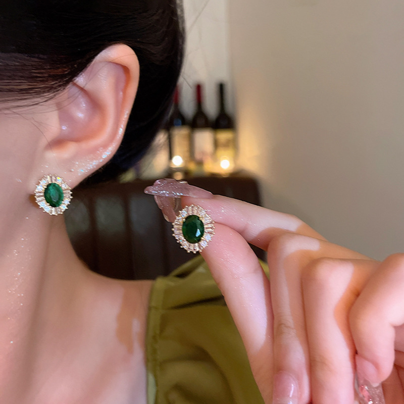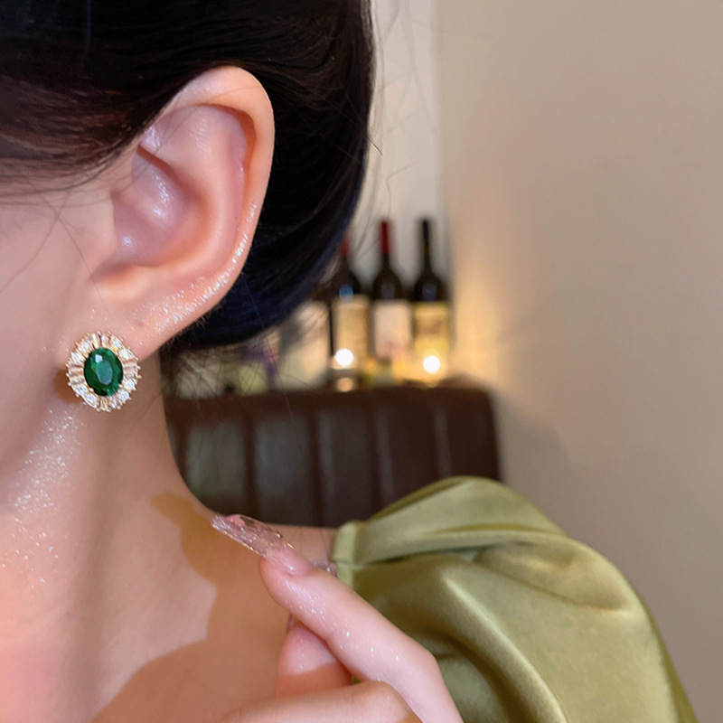 CX13529# 最便宜饰品批发 法式复古宫廷风祖母绿锆石耳钉女轻奢高级感时尚气质耳环耳饰