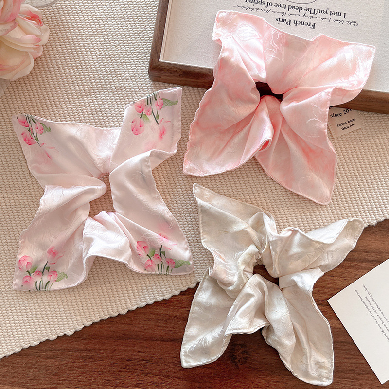 CX13533# 最便宜饰品批发 新中式复古晕染缎面方巾大肠发圈女高级感超大扎头发方形头绳发饰