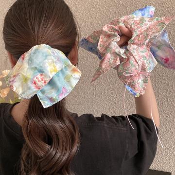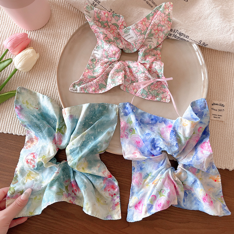 CX13534#最便宜饰品批发 复古油画风方巾大肠发圈女高弹力扎马尾发绳气质不伤发耐用发饰新