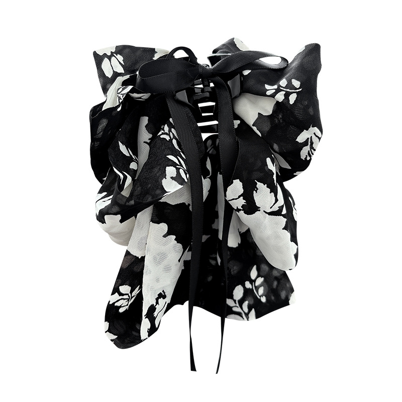 CX13535# 最便宜饰品批发 复古黑白碎花蝴蝶结飘带抓夹女后脑勺低马尾发卡夹子优雅气质发饰