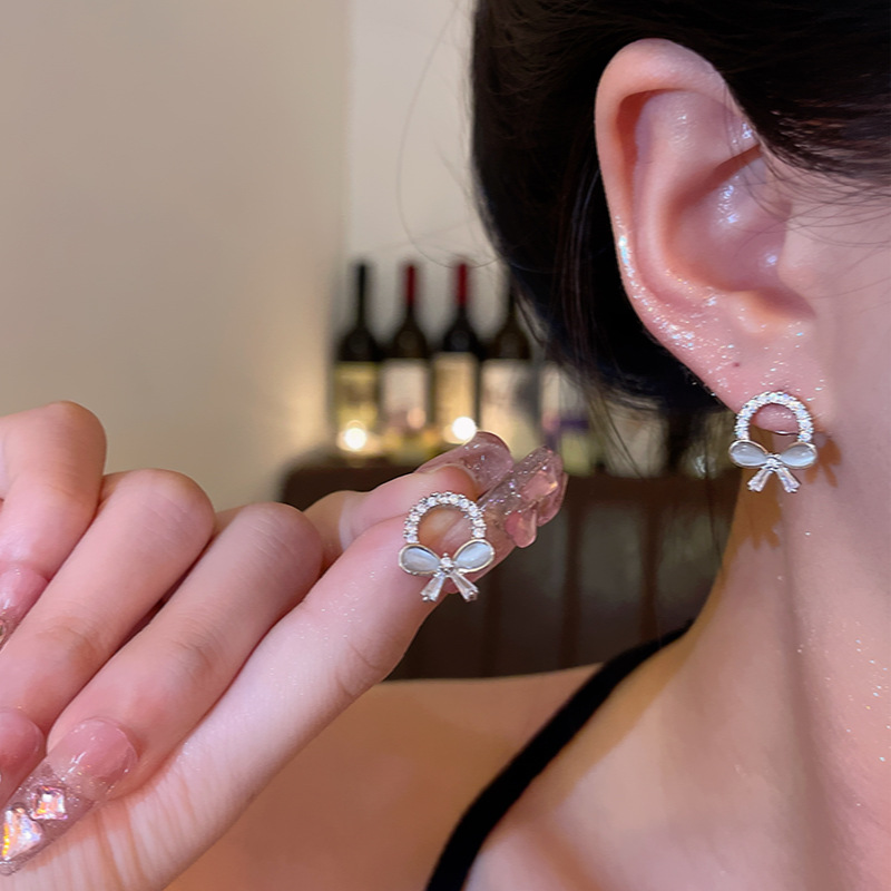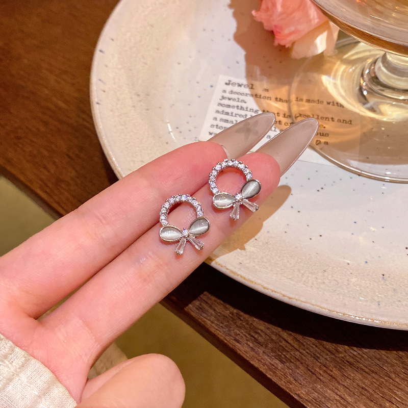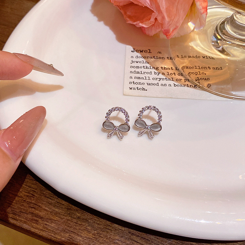 CX13539# 最便宜饰品批发 轻奢小众精致微镶满钻圆圈耳环港风时尚百搭气质猫眼石蝴蝶结耳钉