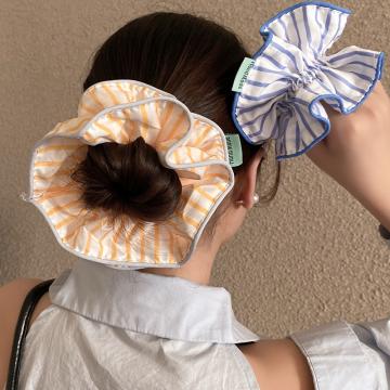 CX13541# 最便宜饰品批发 海边阳光少女丸子头条纹大肠发圈韩系小清新撞色简约皮筋大号发绳