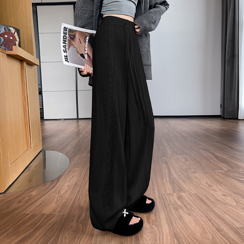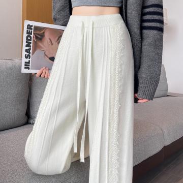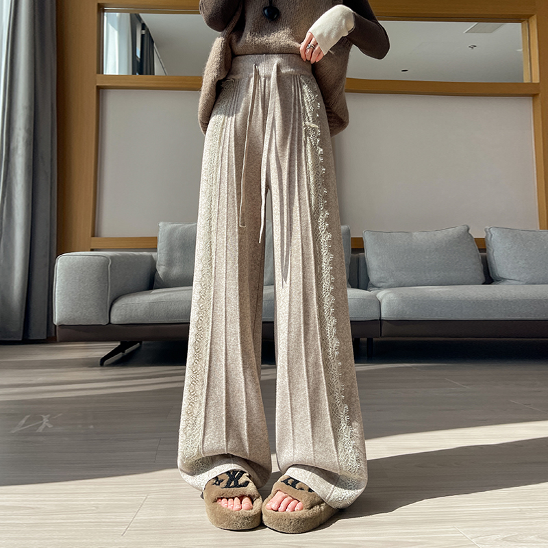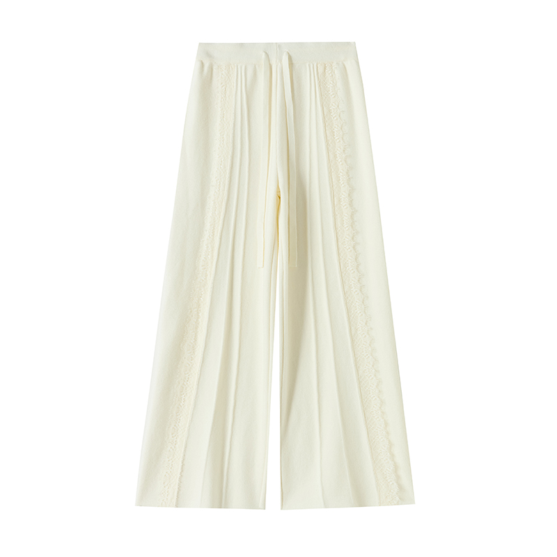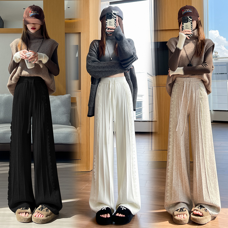 FA46388# 设计感蕾丝针织阔腿裤女秋冬新款高腰显瘦休闲直筒长裤子 服裝批發女裝批發服飾貨源