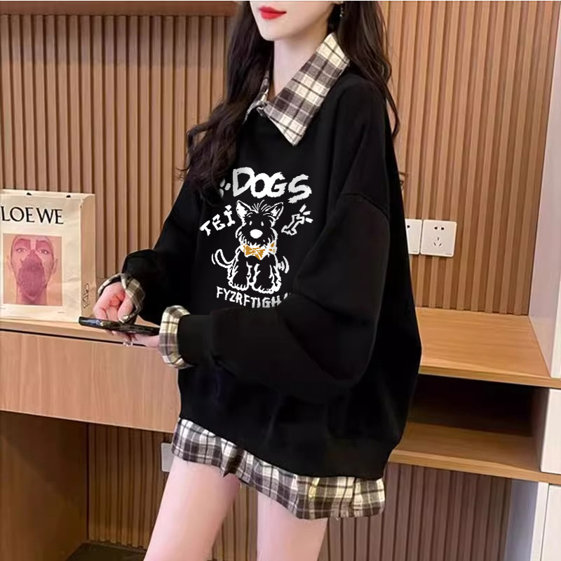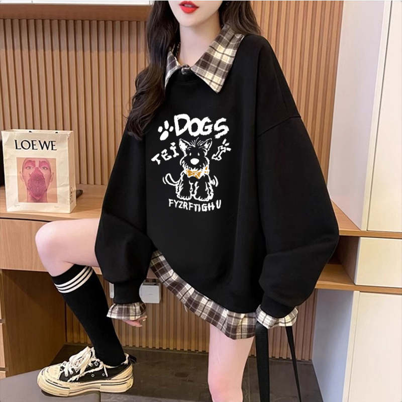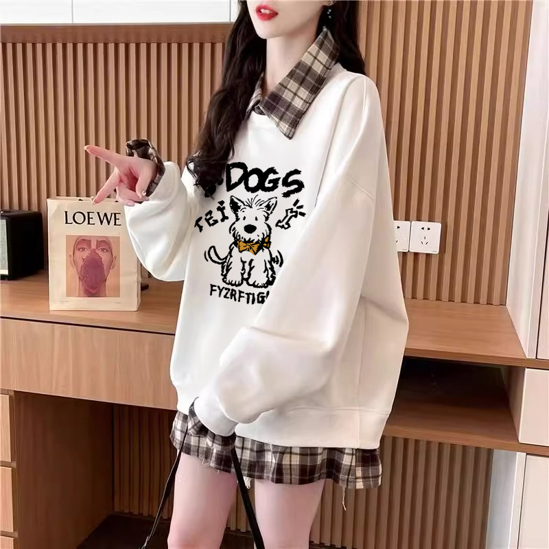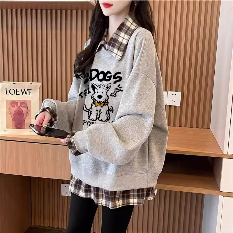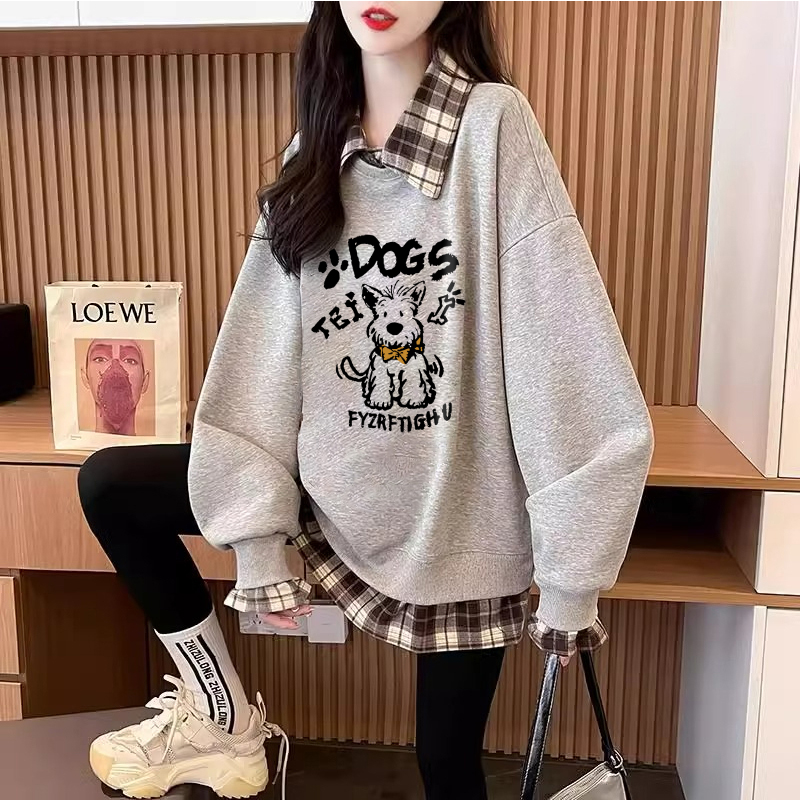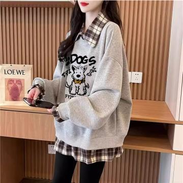 FA47040# 仿华棉复春秋新款假两件卫衣女胖mm大码上衣 服裝批發女裝批發服飾貨源