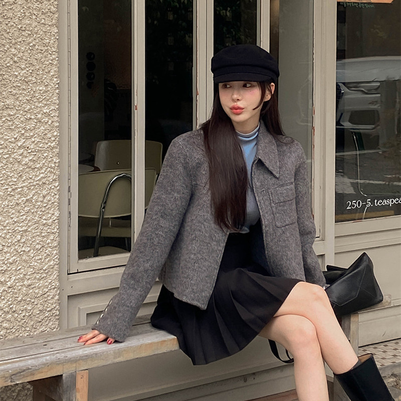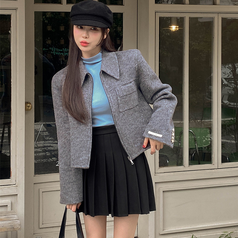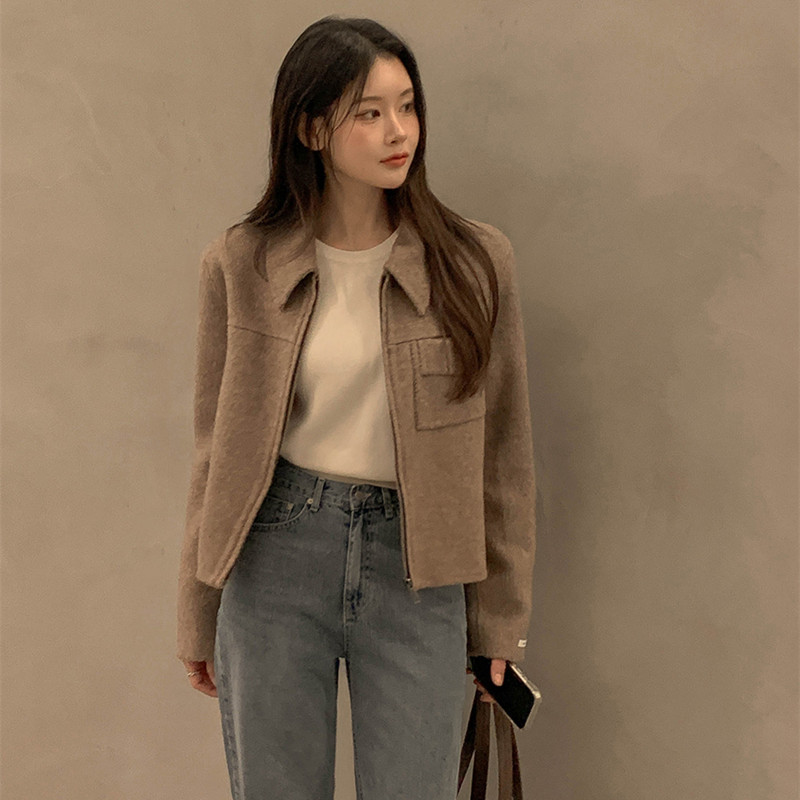 FA47555# 新款翻领小众口袋简约毛呢夹克外套女 服裝批發女裝批發服飾貨源
