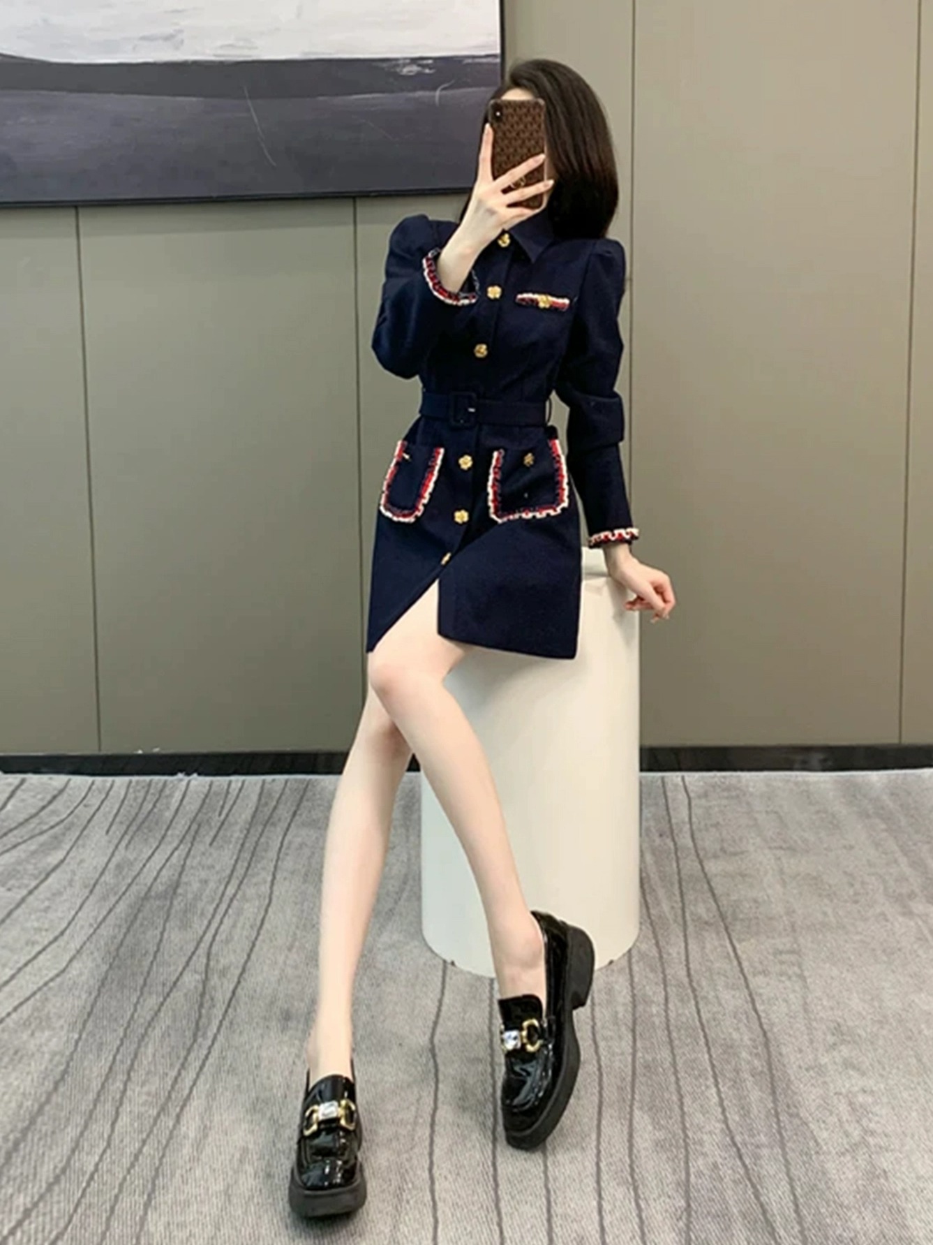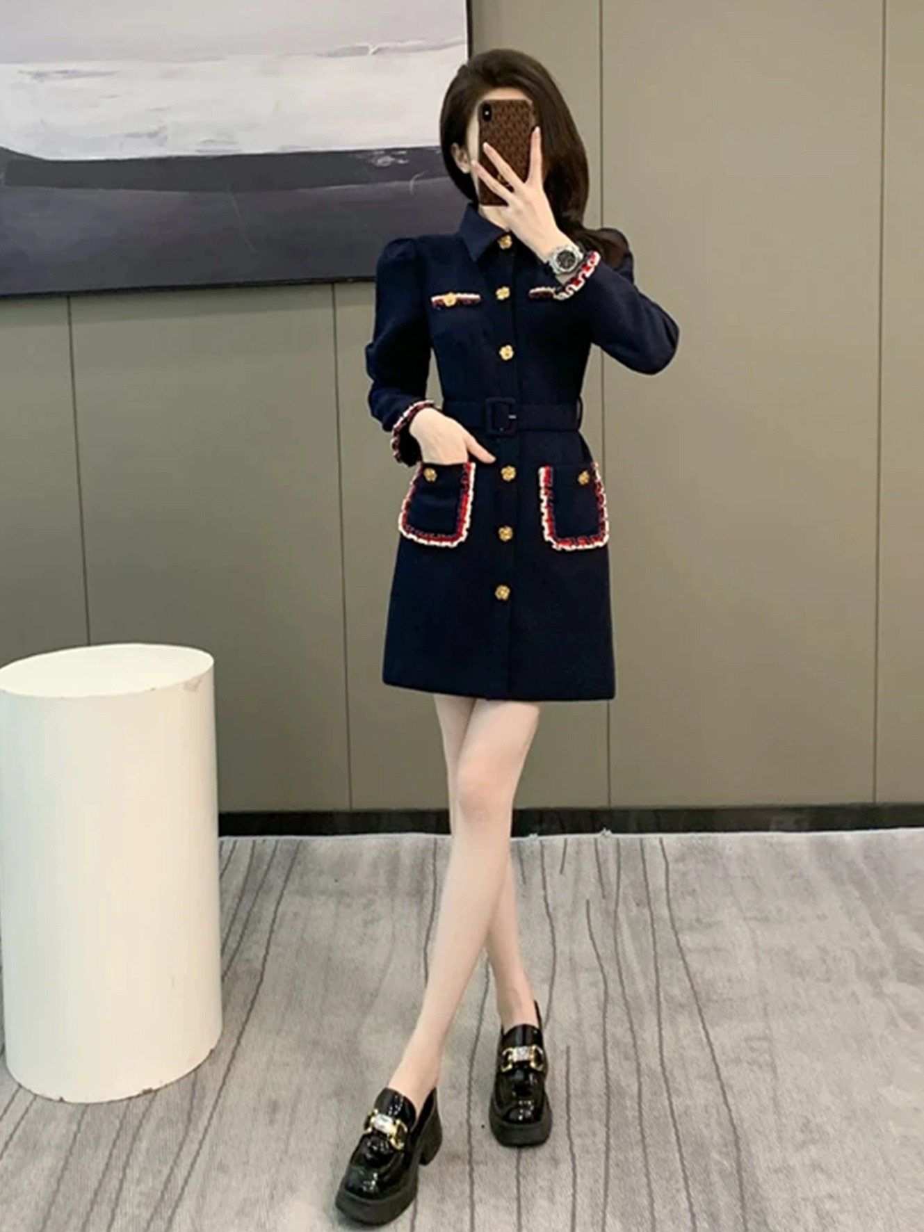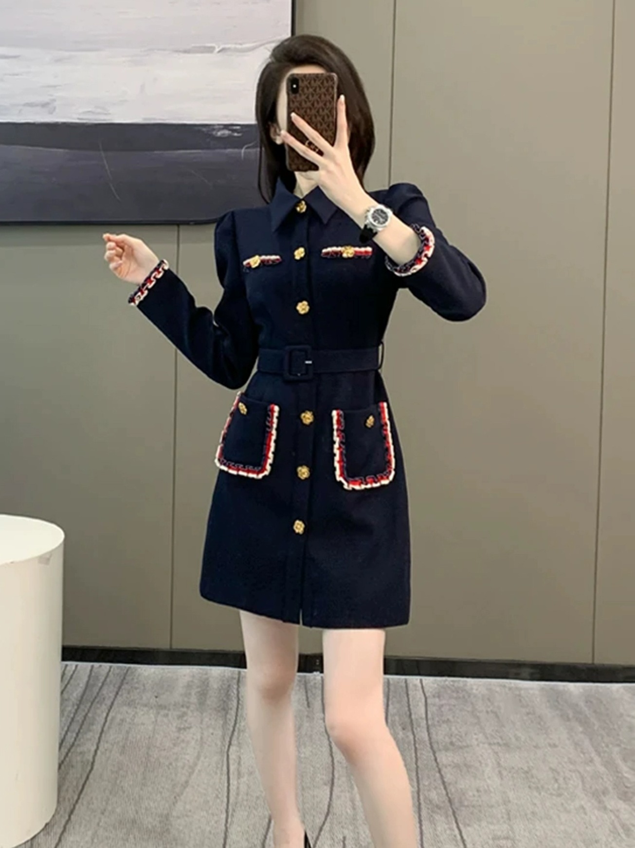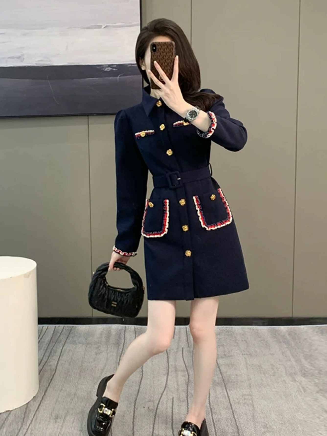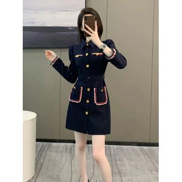 FA47568# 小香风流苏长袖连衣裙女秋季大码胖mm气质独特漂亮高级感短款裙子 服裝批發女裝批發服飾貨源