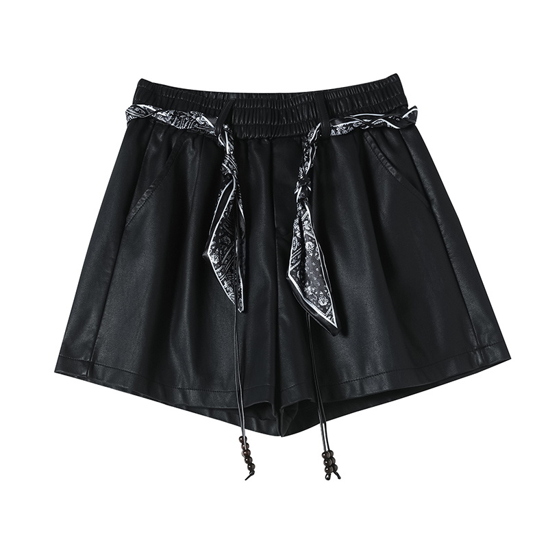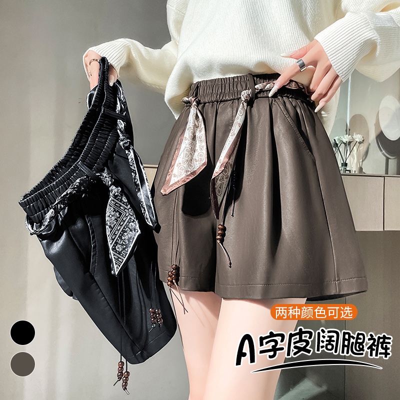 FA47627# 秋冬新款高腰A字短裤靴裤软皮休闲裤女PU皮阔腿裤 服裝批發女裝批發服飾貨源