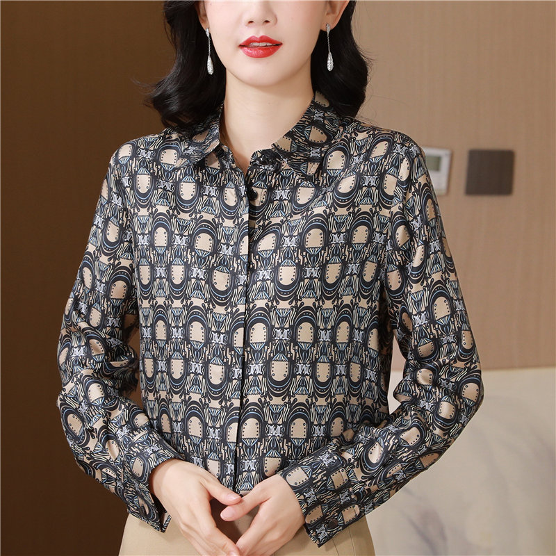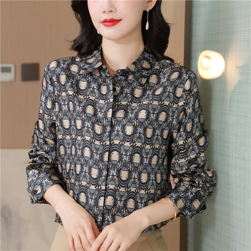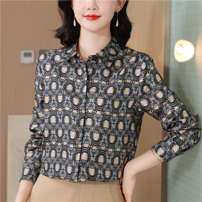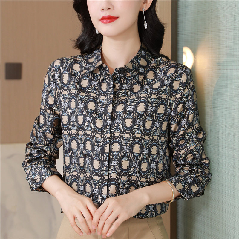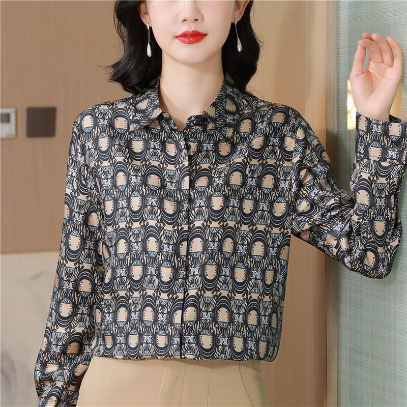 FA47642# 意M@X春秋新款翻领印花单排扣真丝长袖衬衫气质时尚上衣女 服裝批發女裝批發服飾貨源