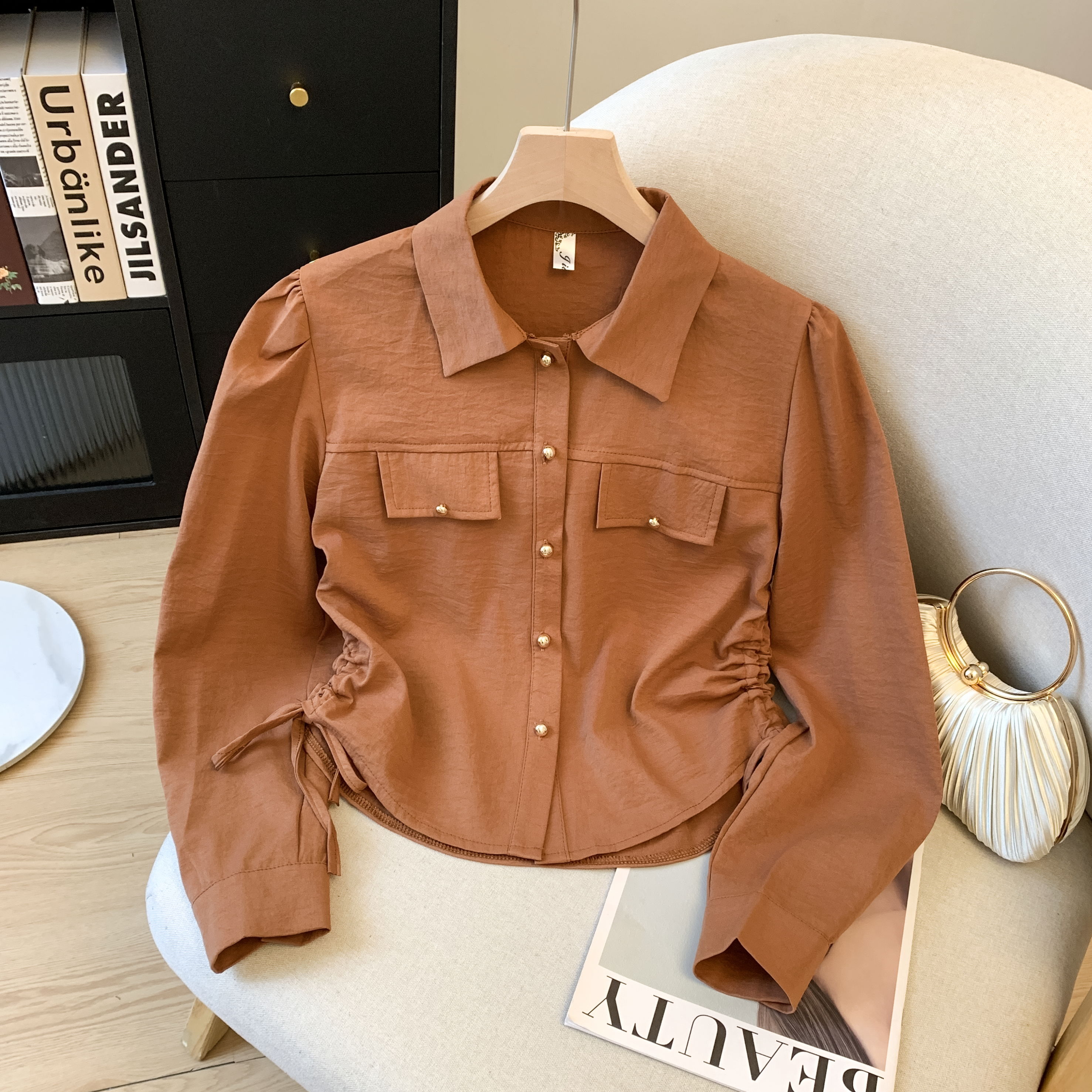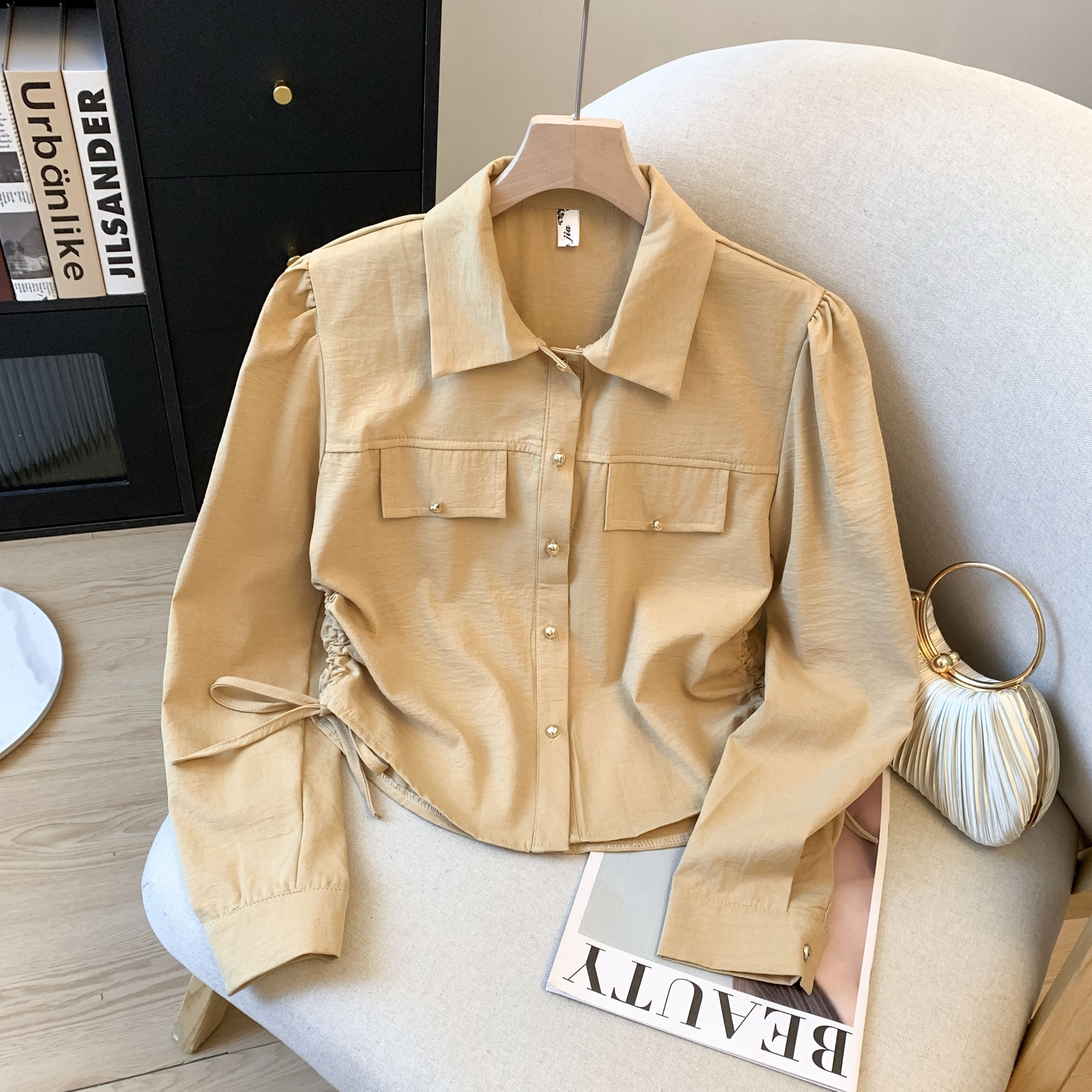 FA47702# 秋冬新款抽绳工装开衫外套还款POLO领上衣 服裝批發女裝批發服飾貨源
