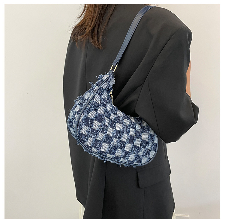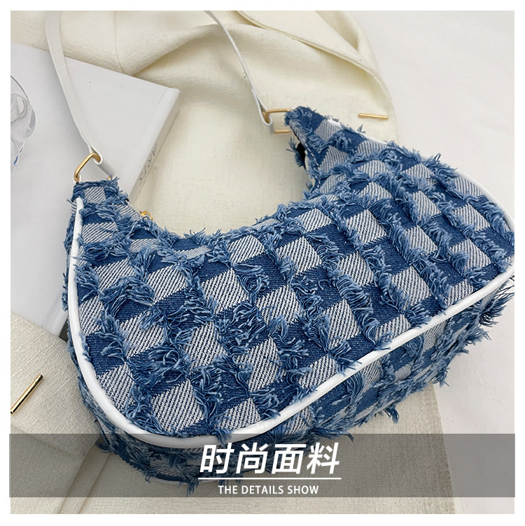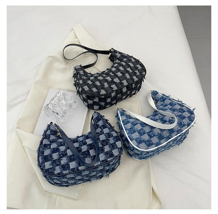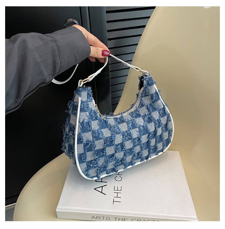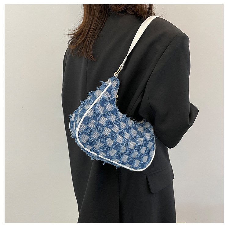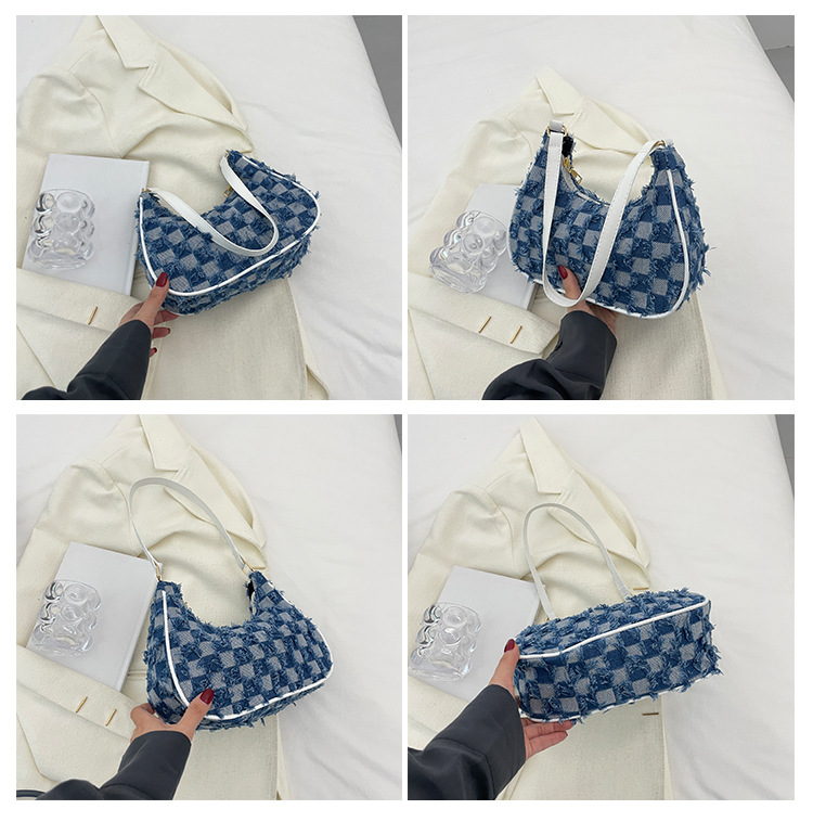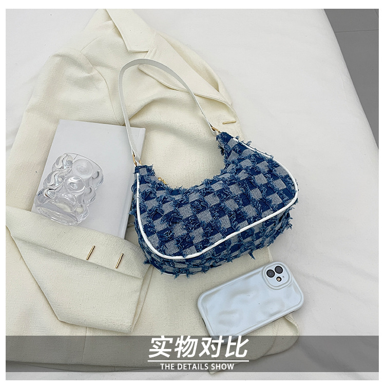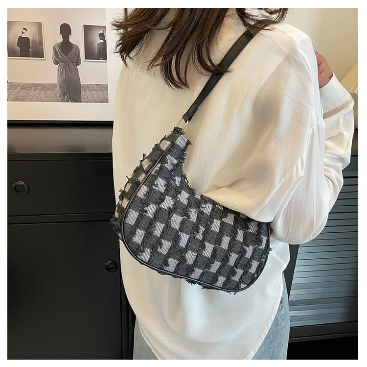 TJ2052# 女包厂家直销跨境批发2023秋季新款格子腋下单肩包简约百搭手提包