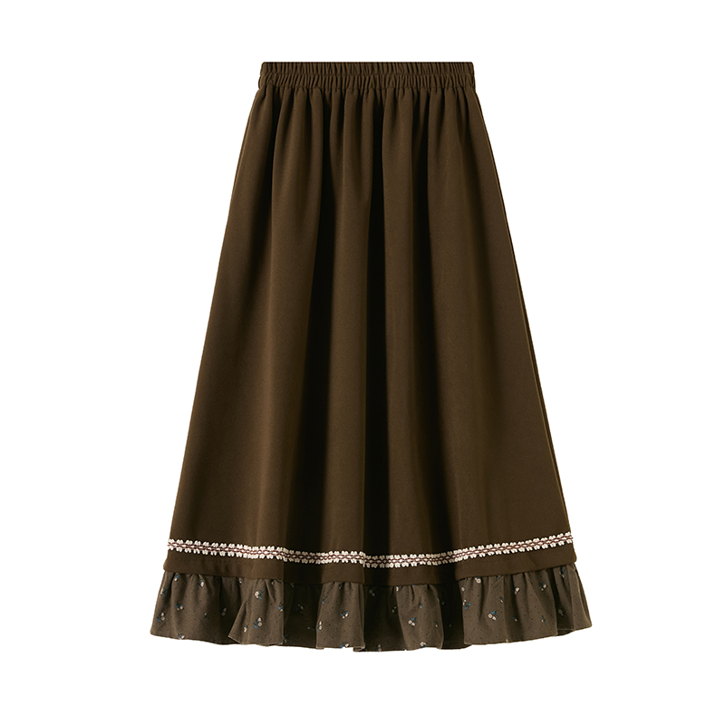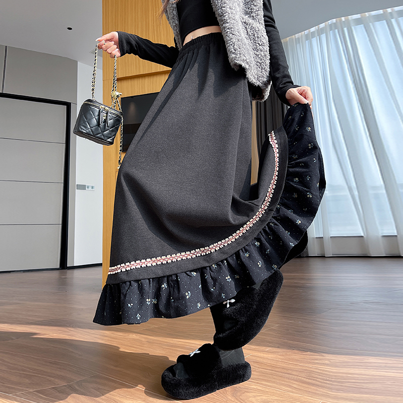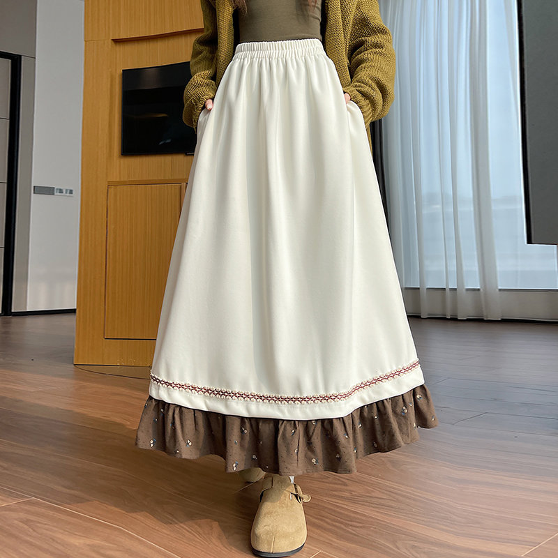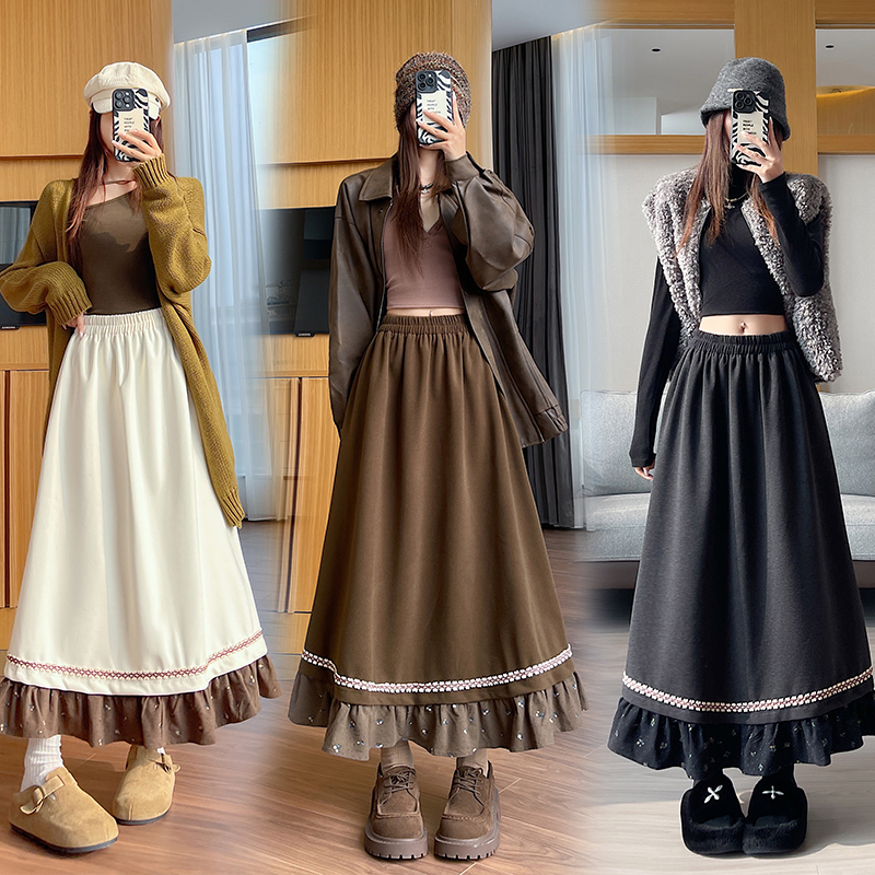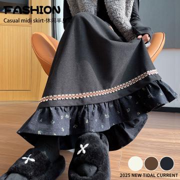 FA47796# 冬季新款毛呢加厚半身裙女设计感拼接高腰a字裙大摆长裙 服裝批發女裝批發服飾貨源