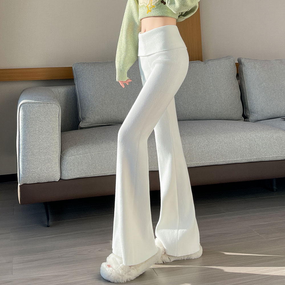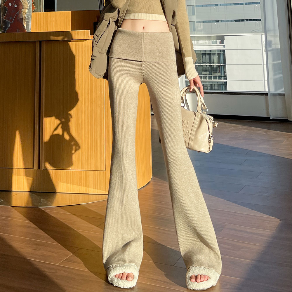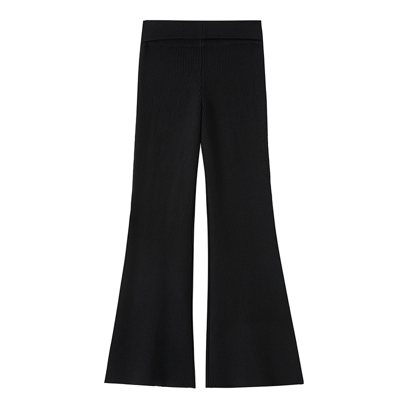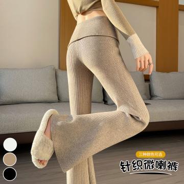 FA47798# 翻边针织微喇裤女秋冬高腰紧身弹力显瘦马蹄裤喇叭拖地裤 服裝批發女裝批發服飾貨源