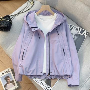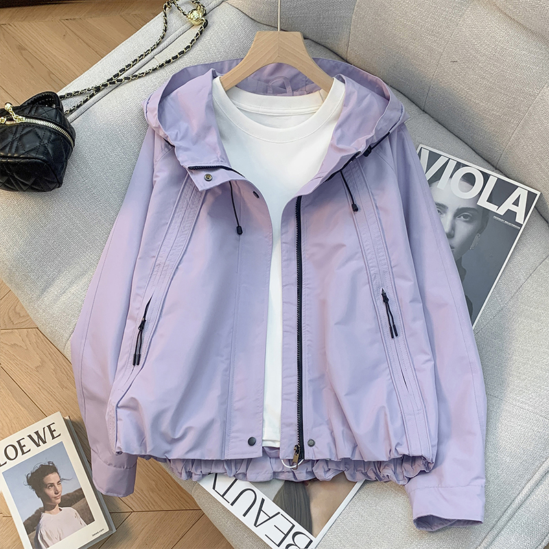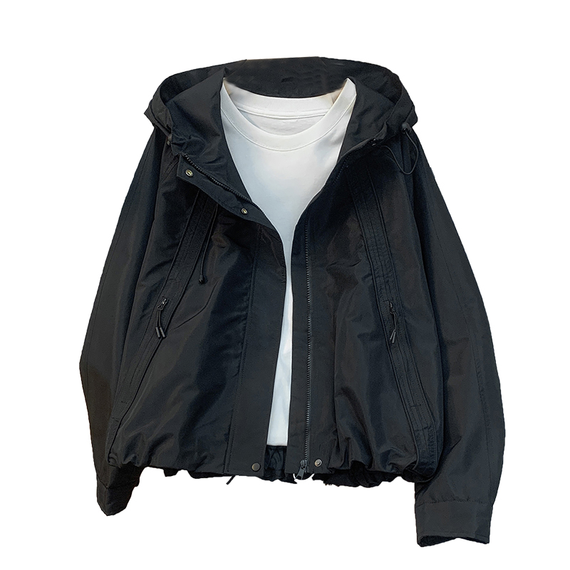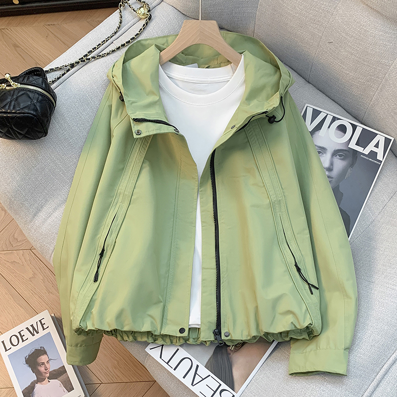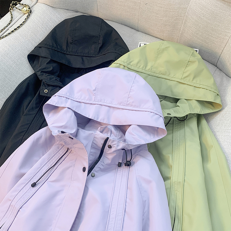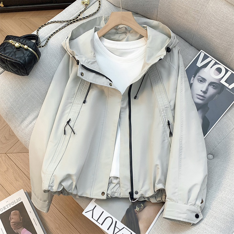 FA47922# 秋冬新款大码宽松短款风衣休闲连帽外套防风百搭上衣女 服裝批發女裝批發服飾貨源