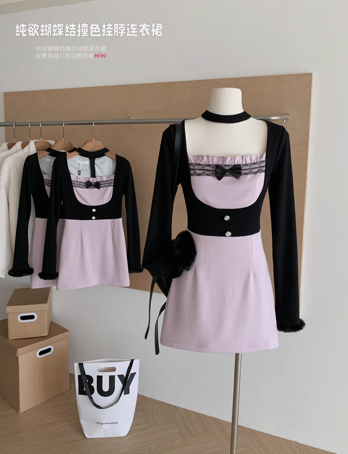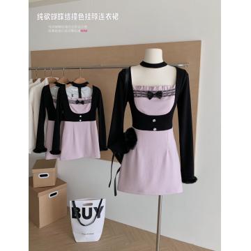 FA47938# 森女系原创想去海边甜心布蕾甜酷少女粉紫连衣裙修身显瘦 服裝批發女裝批發服飾貨源