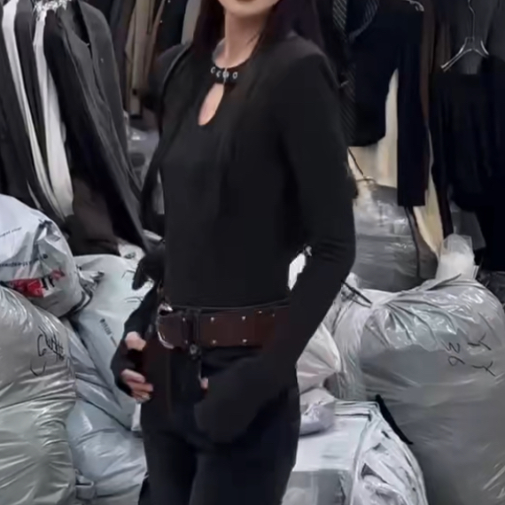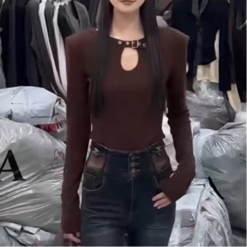 FA48053# 辣妹风心机镂空长袖打底衫女冬新款修身显瘦内搭t恤上衣 服裝批發女裝批發服飾貨源