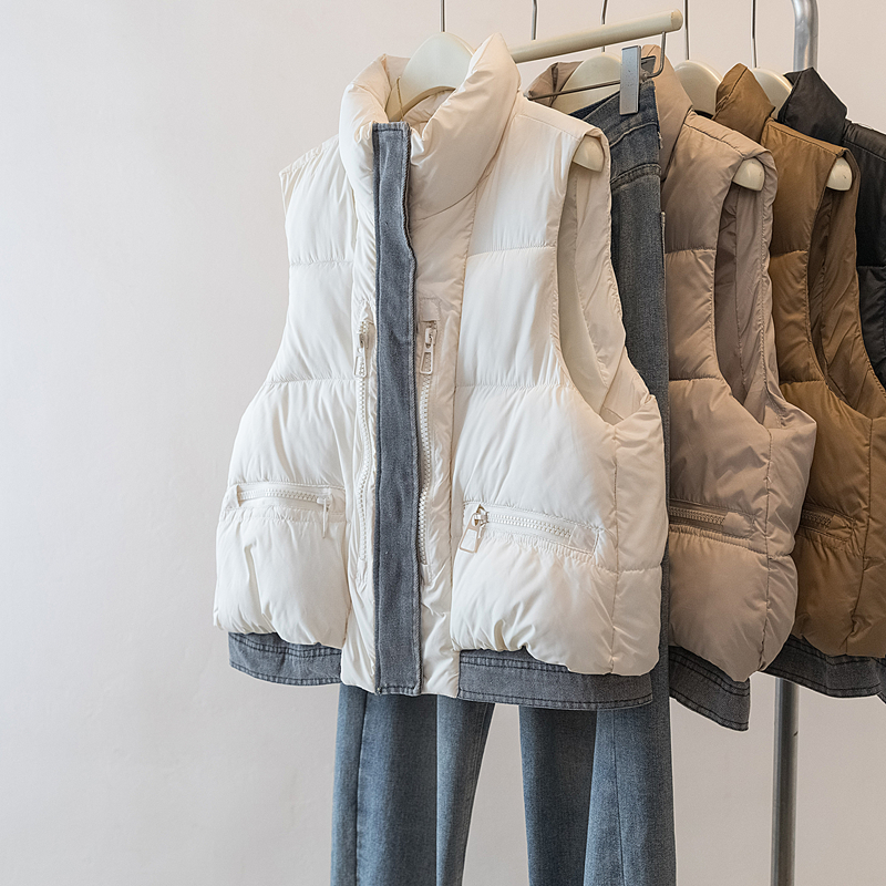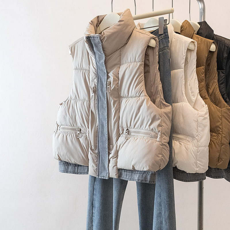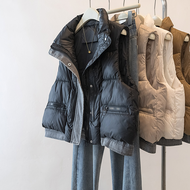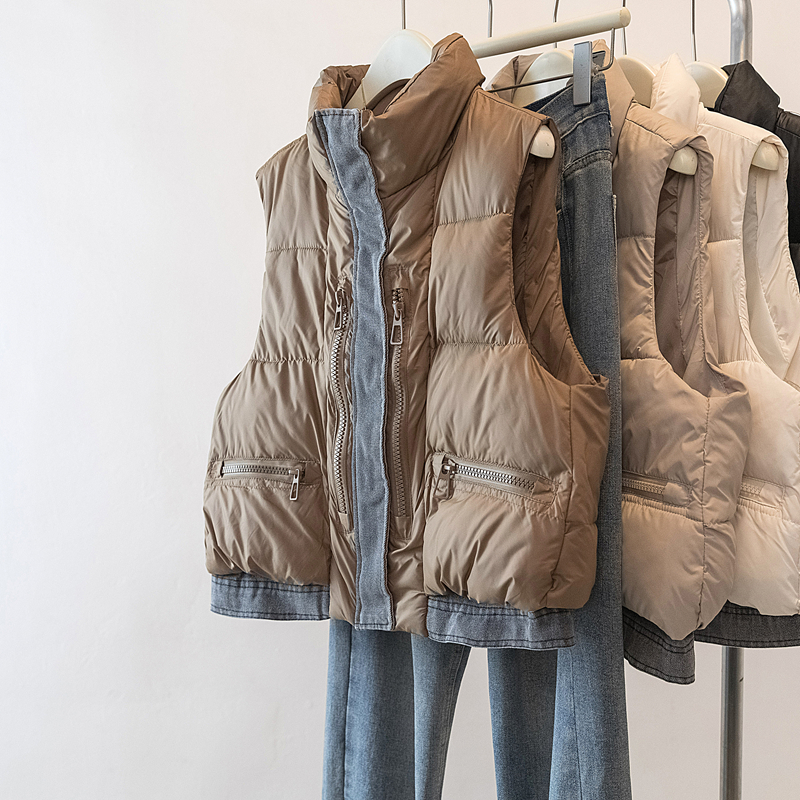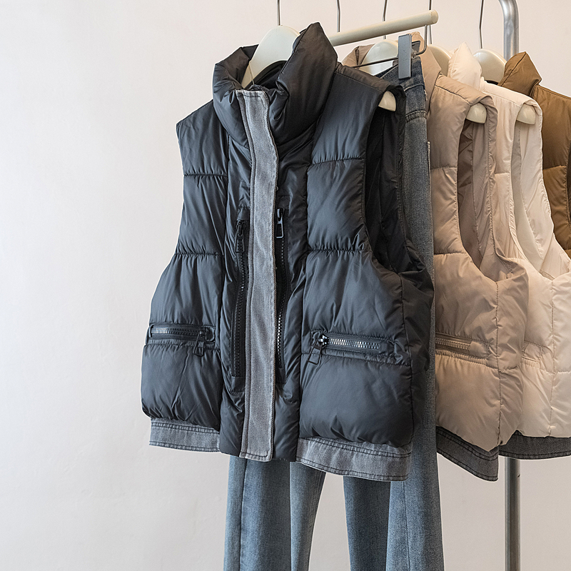 FA48100# 秋冬季新款设计感牛仔拼接棉马甲时尚洋气坎肩百搭外套女 服裝批發女裝批發服飾貨源