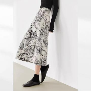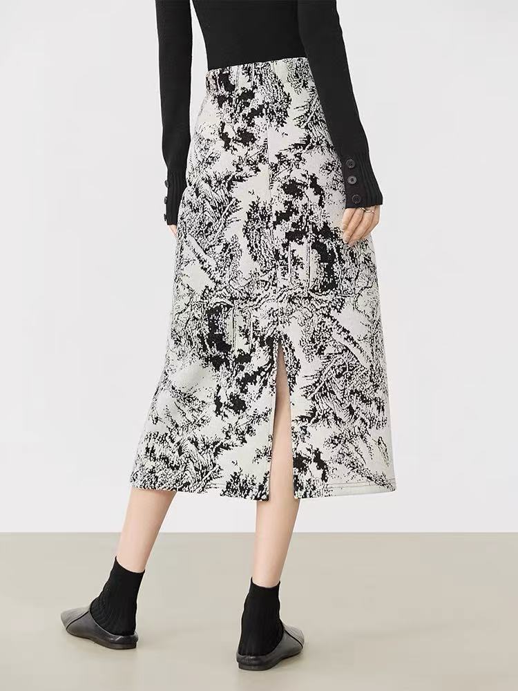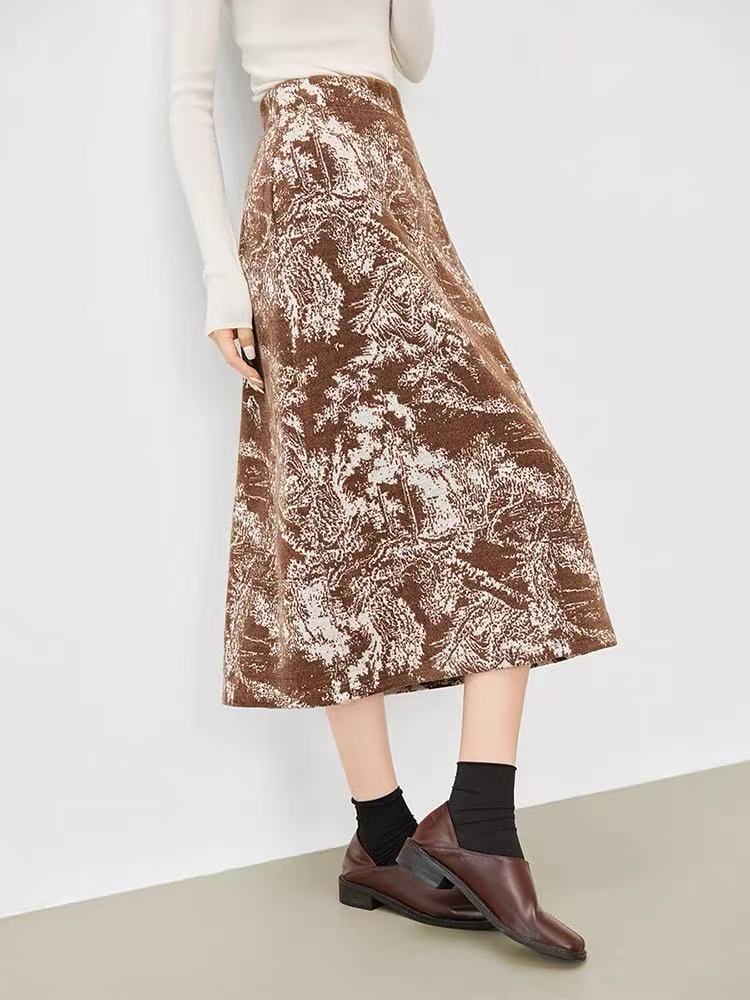 FA48130# 雪尼尔印花半身裙女秋冬新款新中式气质直筒裙复古高级感 服裝批發女裝批發服飾貨源