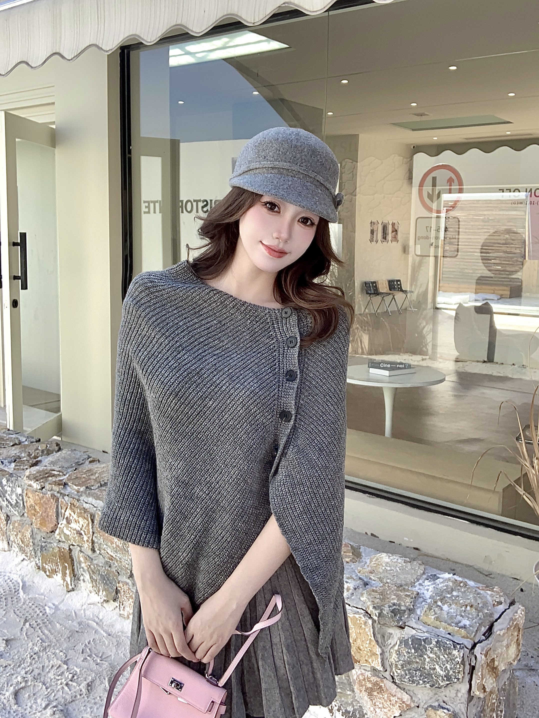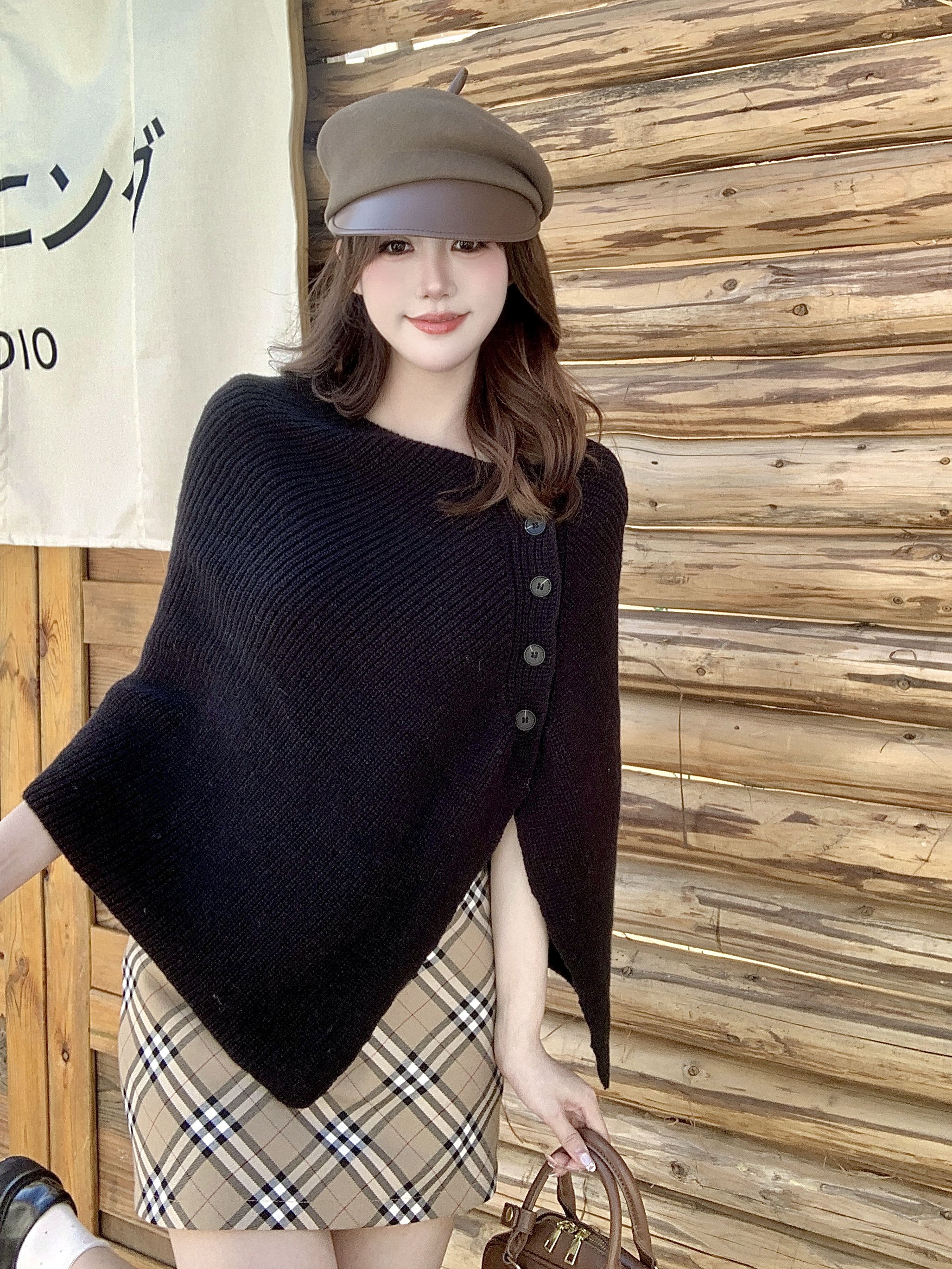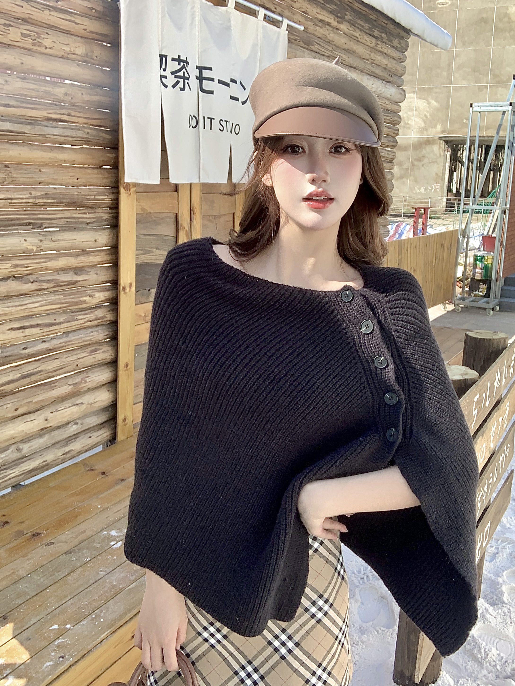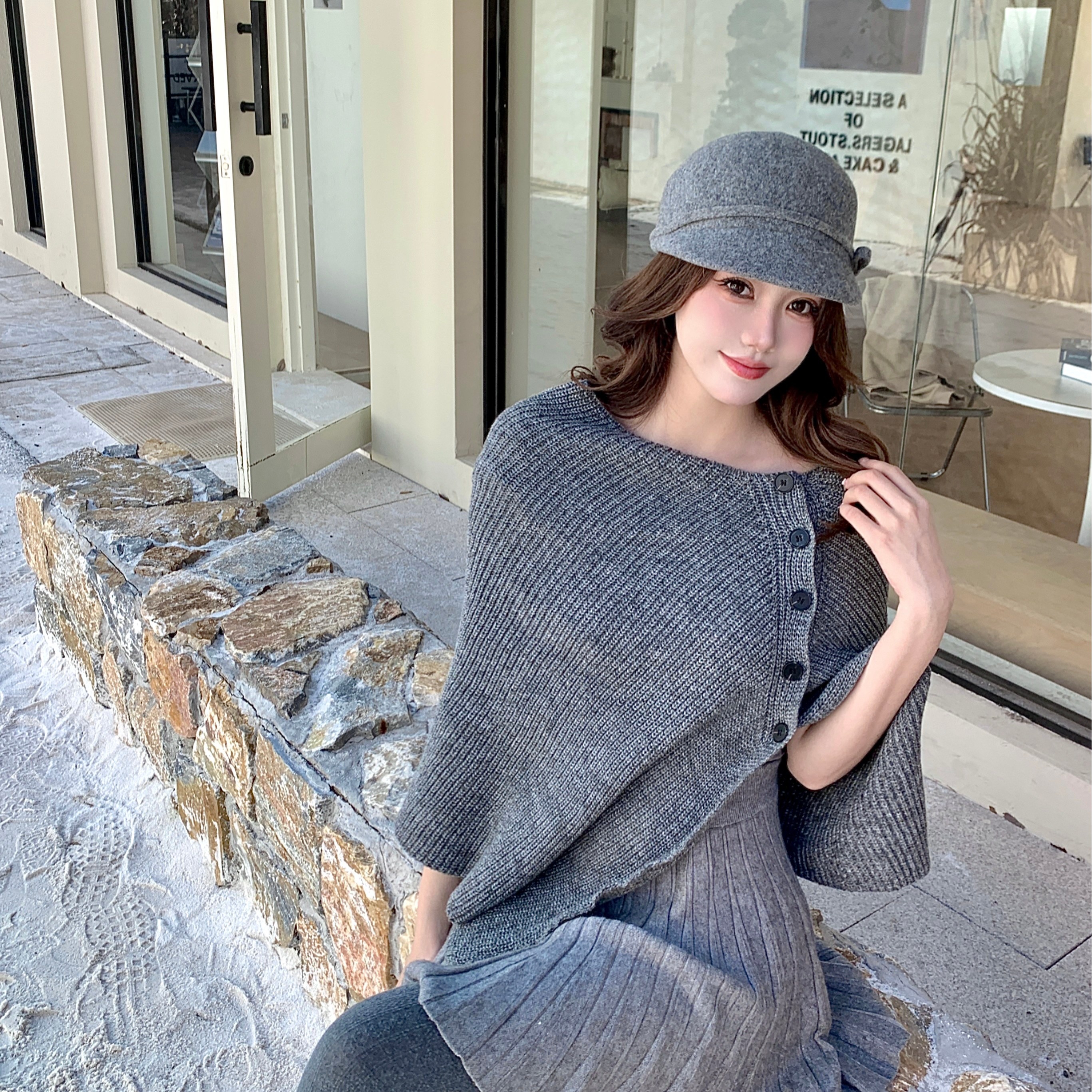 FA48149# 韩国chic针织披肩斗篷大版型毛衣秋冬设计感上衣女 服裝批發女裝批發服飾貨源