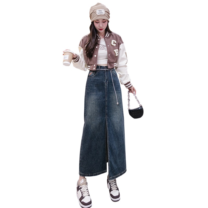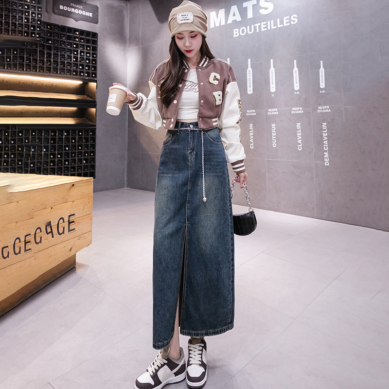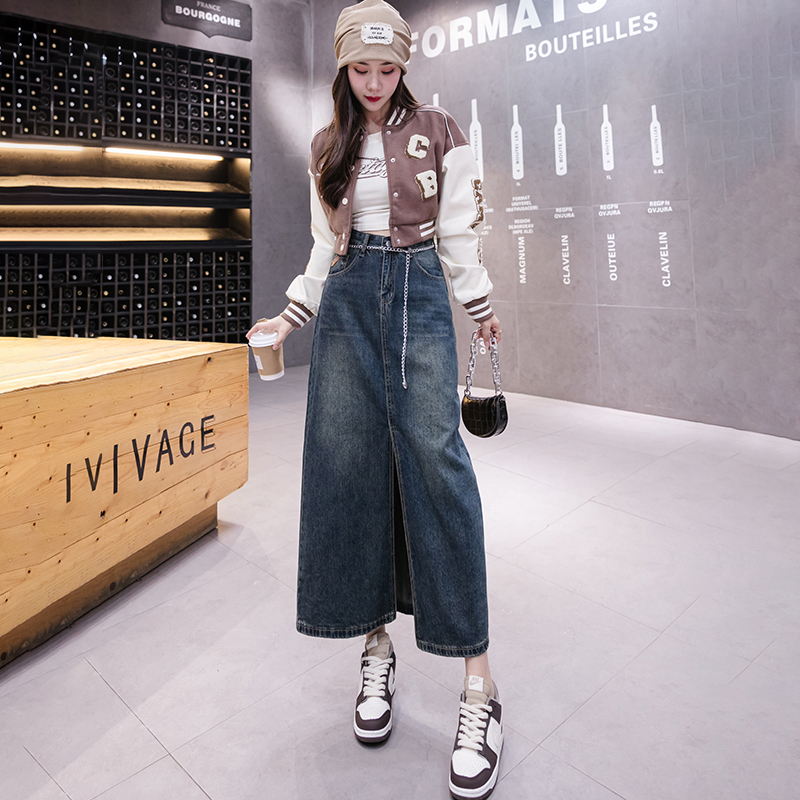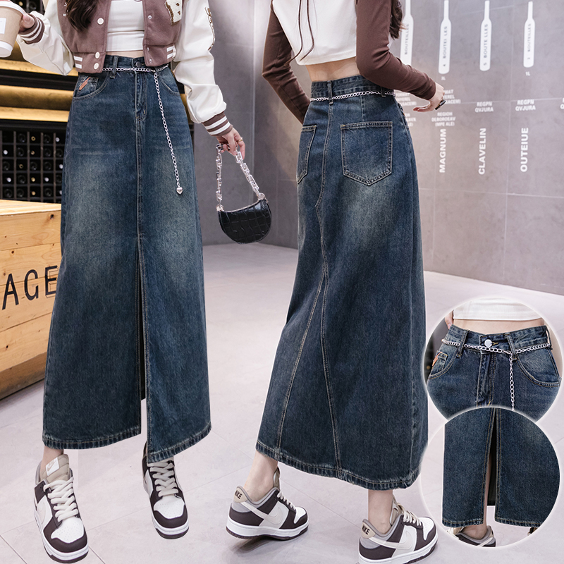 FA48219# 新款半身裙秋季长裙开叉可拆卸链子复古女舒适修身显瘦 服裝批發女裝批發服飾貨源