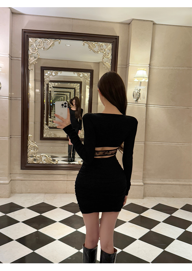FA48247# 建模身材纯欲性感镂空蕾丝拼接针织上衣包臀连衣裙 服裝批發女裝批發服飾貨源