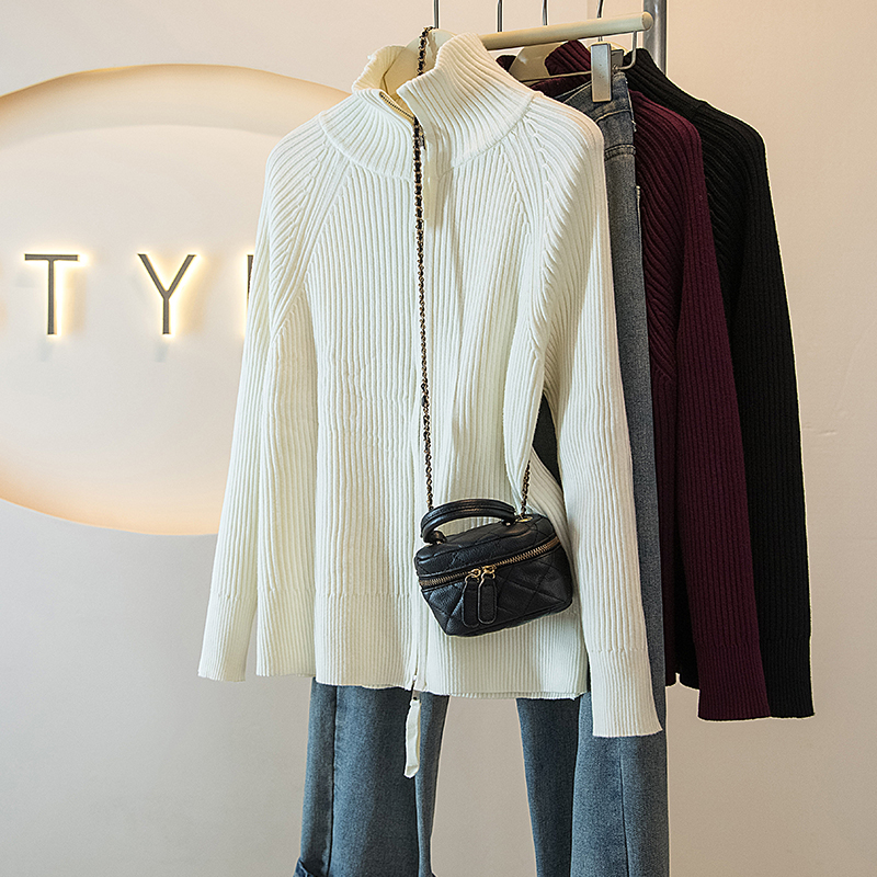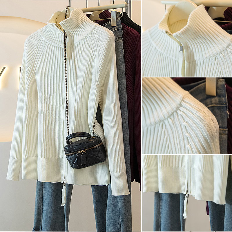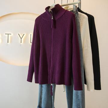 FA48253# 大码女装秋冬新款韩系高级感气质纯色双拉链针织衫外套上衣 服裝批發女裝批發服飾貨源