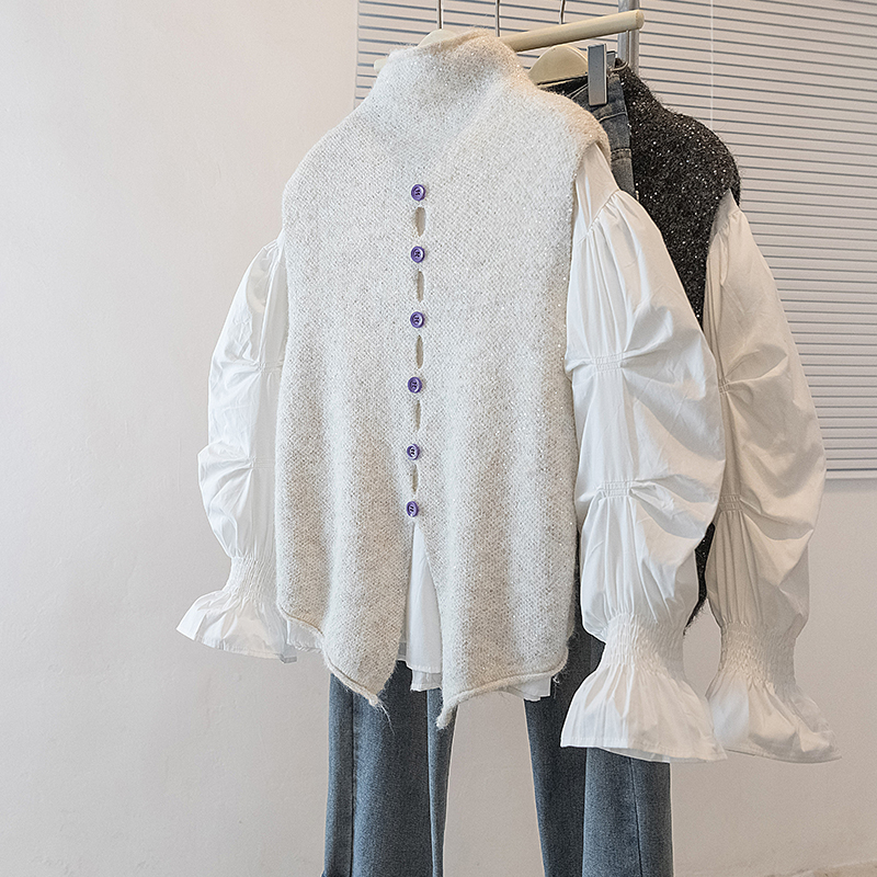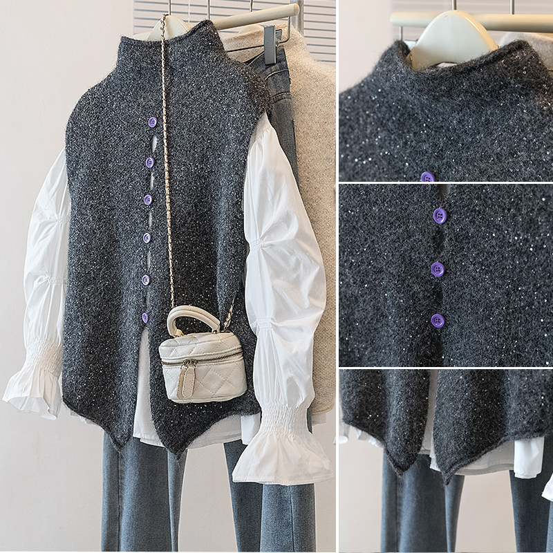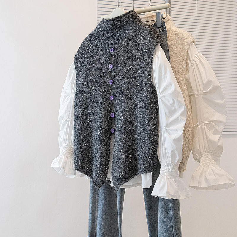 FA48254# 大码女装秋冬新款韩版单排扣针织马别致百搭叠穿无毛衣背心坎 服裝批發女裝批發服飾貨源