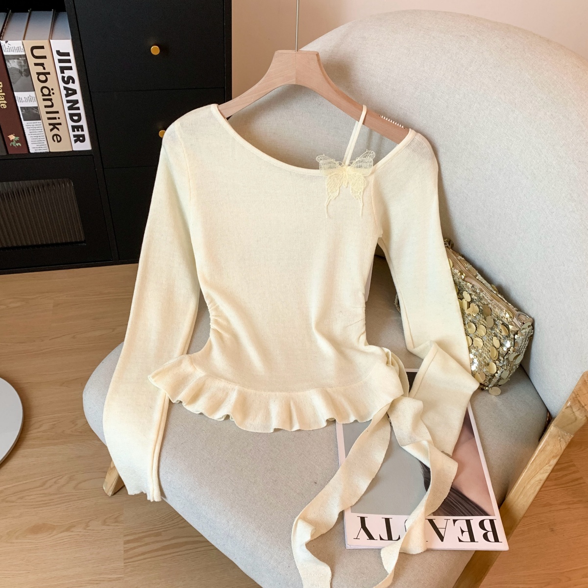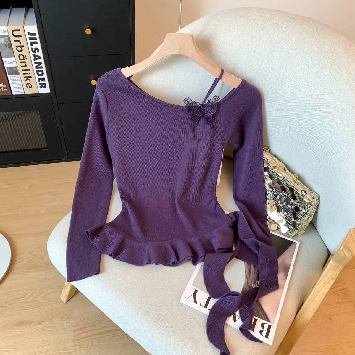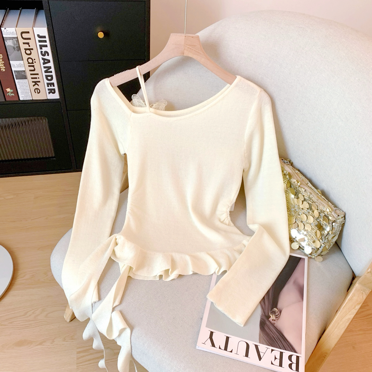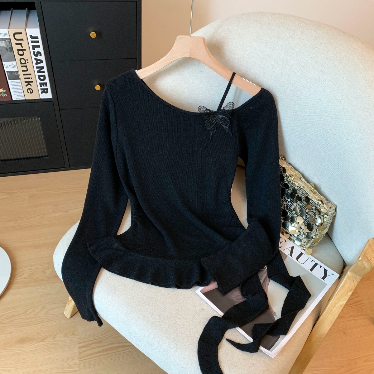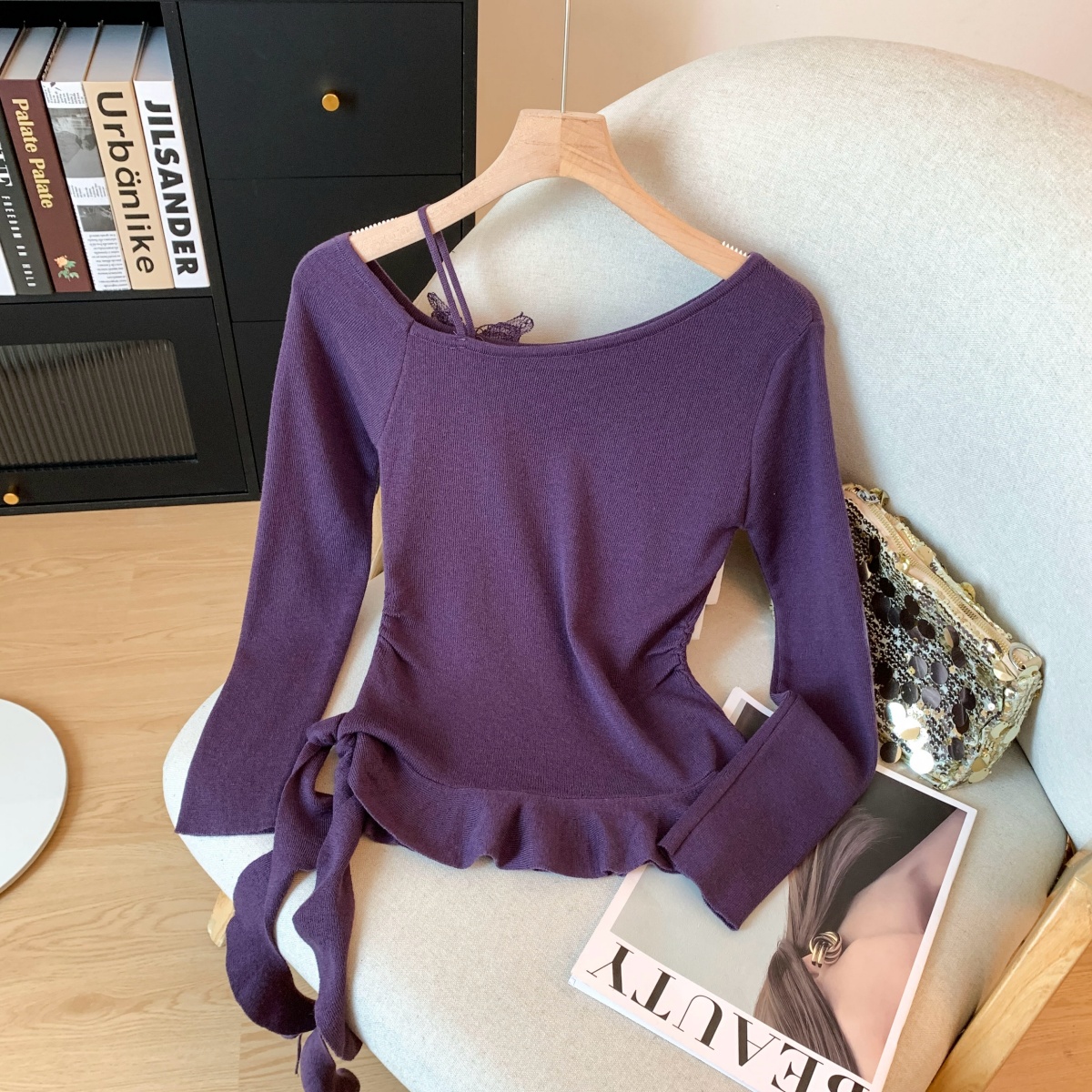 FA48312# 秋冬新款打底针织衫纯欲风斜肩不规则下摆内搭上衣 服裝批發女裝批發服飾貨源