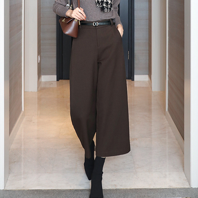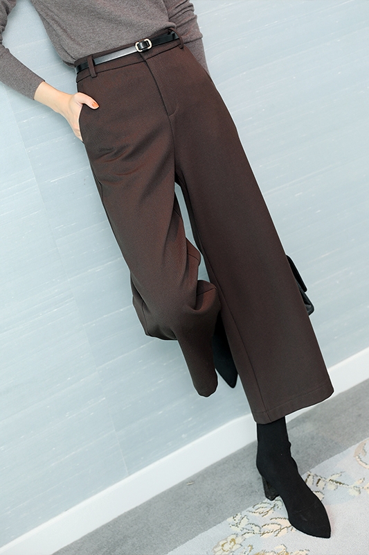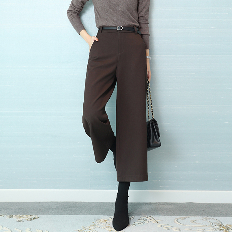 FA48316# 八分毛呢阔腿裤女士秋冬装新款裤子显瘦高腰直筒休闲裤 服裝批發女裝批發服飾貨源