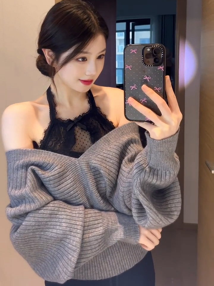 FA48322# 法式新款V领毛衣女秋冬外穿潮 服裝批發女裝批發服飾貨源