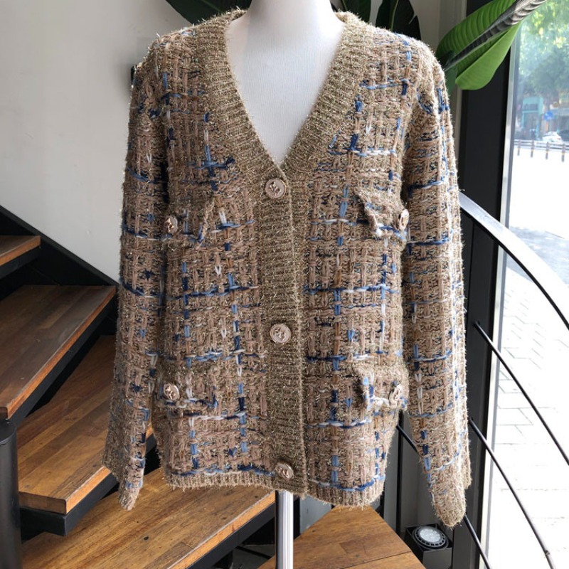 FA48343# 爆款推荐重工气质韩版针织加厚宽松混色小香风毛衣针织外套 服裝批發女裝批發服飾貨源