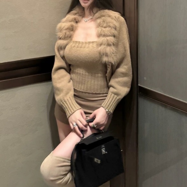 FA48346# 毛针织衫外套抹胸新款套装短款秋冬小个子穿搭时尚气质两件套 服裝批發女裝批發服飾貨源